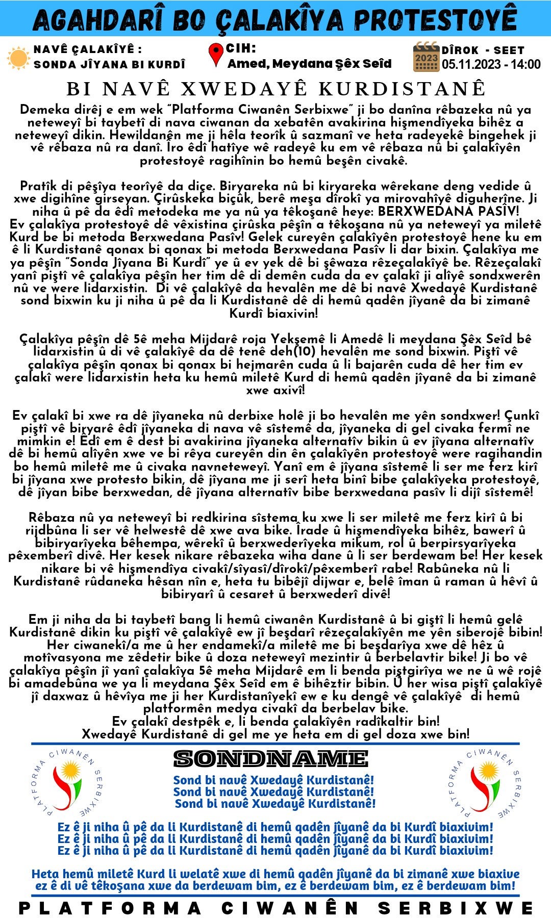 Hewlêr (Rûdaw) - Platforma Ciwanên Serbixwe li Qada Şêx Seîdê ya Amedê “Sonda Jiyana Bi Kurdî” xwar ku wê ji niha û pê ve di tevahiya jiyana xwe de bi Kurdî biaxivin.