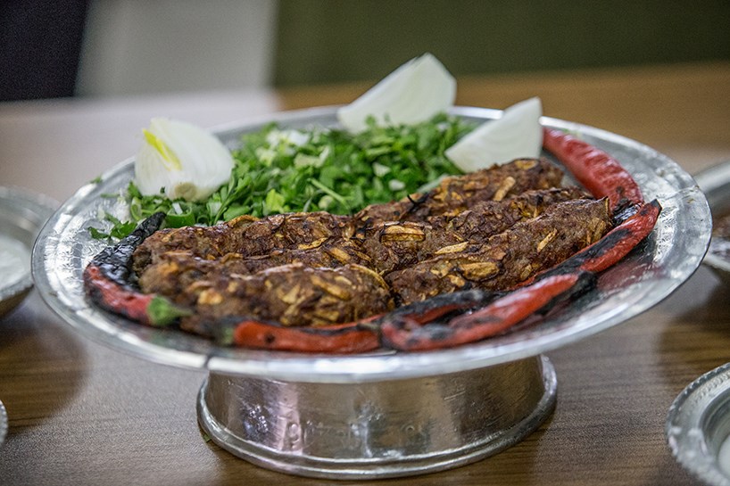 Kebaba dombelan ligel îsota hatî pijandin û pîvazê tê pêşkeşkirin.