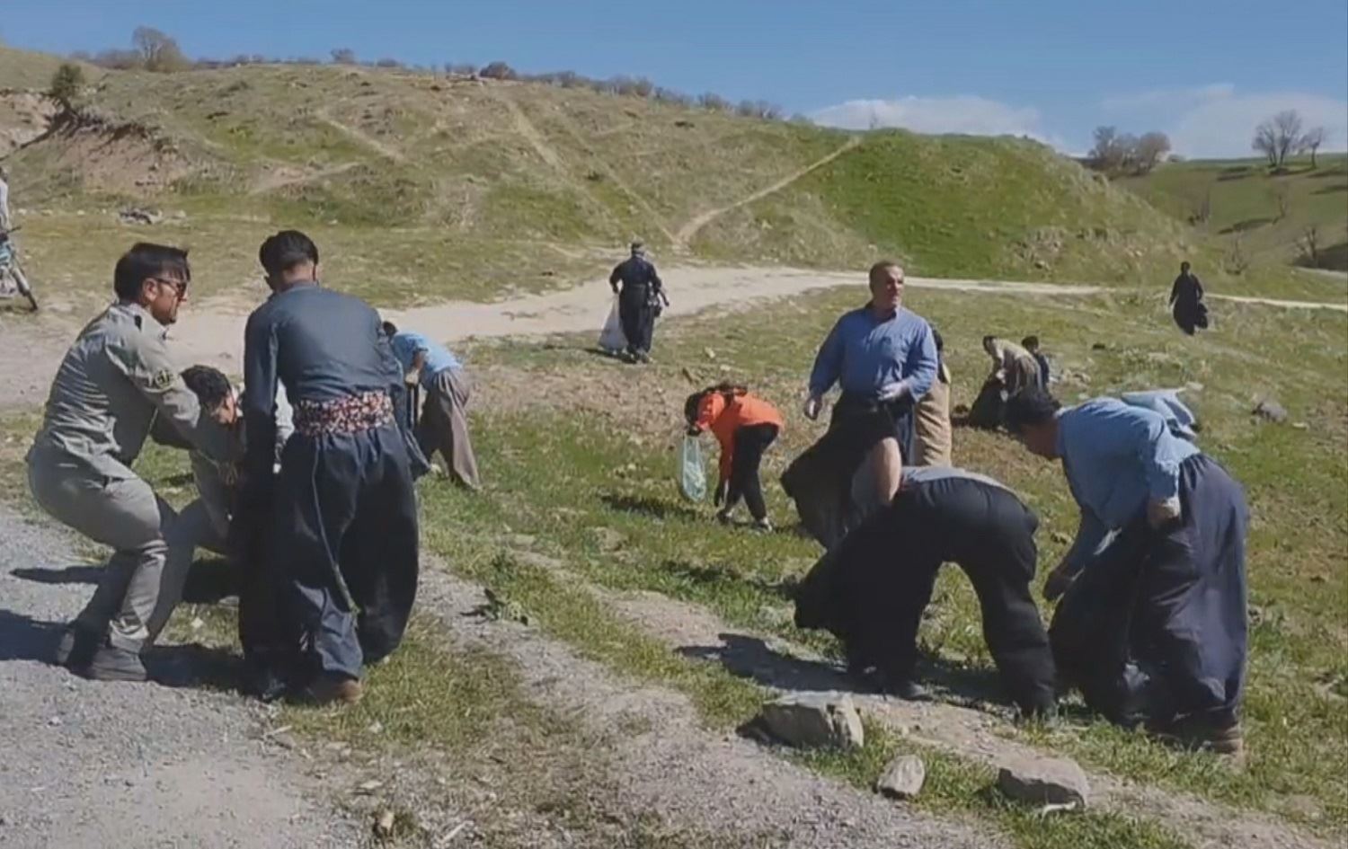 Hinek kesan zibil û plastîk li dûv hiştin û niha jîngehparêz û xelkê gundê Şayinê yê Kamêranê wan bermahiyan paqij dikin.