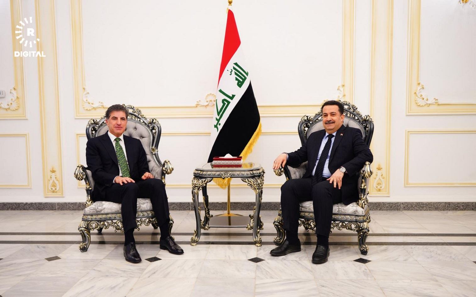 Hewlêr (Rûdaw) - Serokê Herêma Kurdistanê Nêçîrvan Barzanî û Serokwezîrê Îraqê Mihemed Şiya Sûdanî li Bexdayê civiyan.