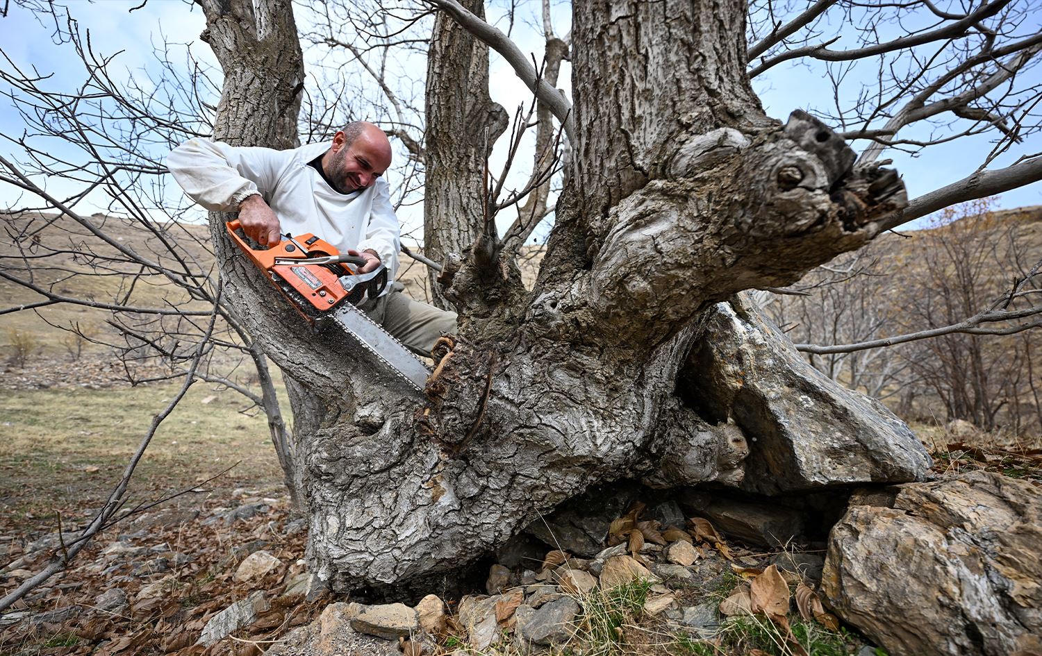 Mêşvan Abdulwahab Semo jî li şopa wan digere û bêyî ku zererê bide daran hingivê xwezayî ji wan kunên teng û asê derdixîne.