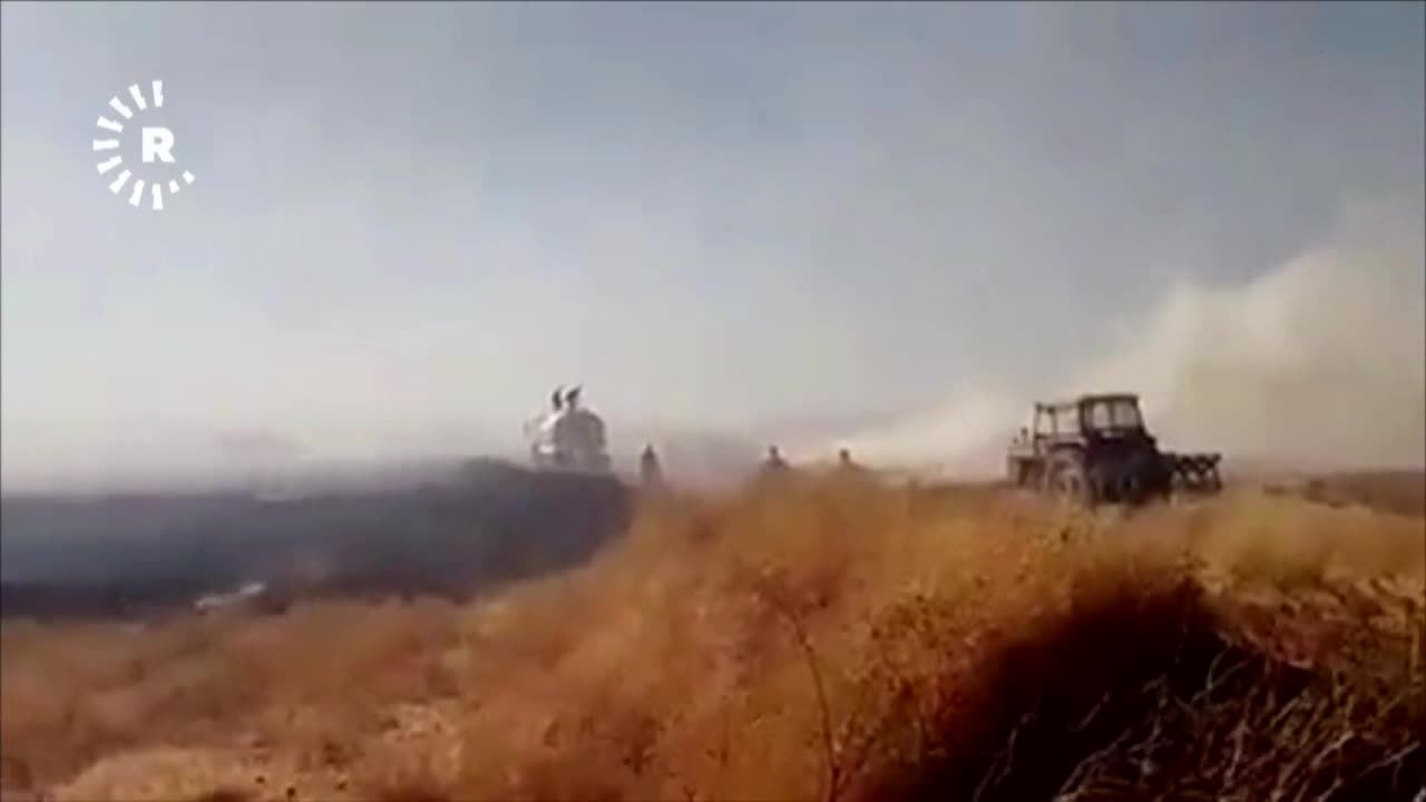 Di dîmenan de xuya dibe ku welatiyan traktor û tankerên avê anîne û hejmarek welatî di nav zeviyên şewitî de hewl didin agir kontrol bikin.