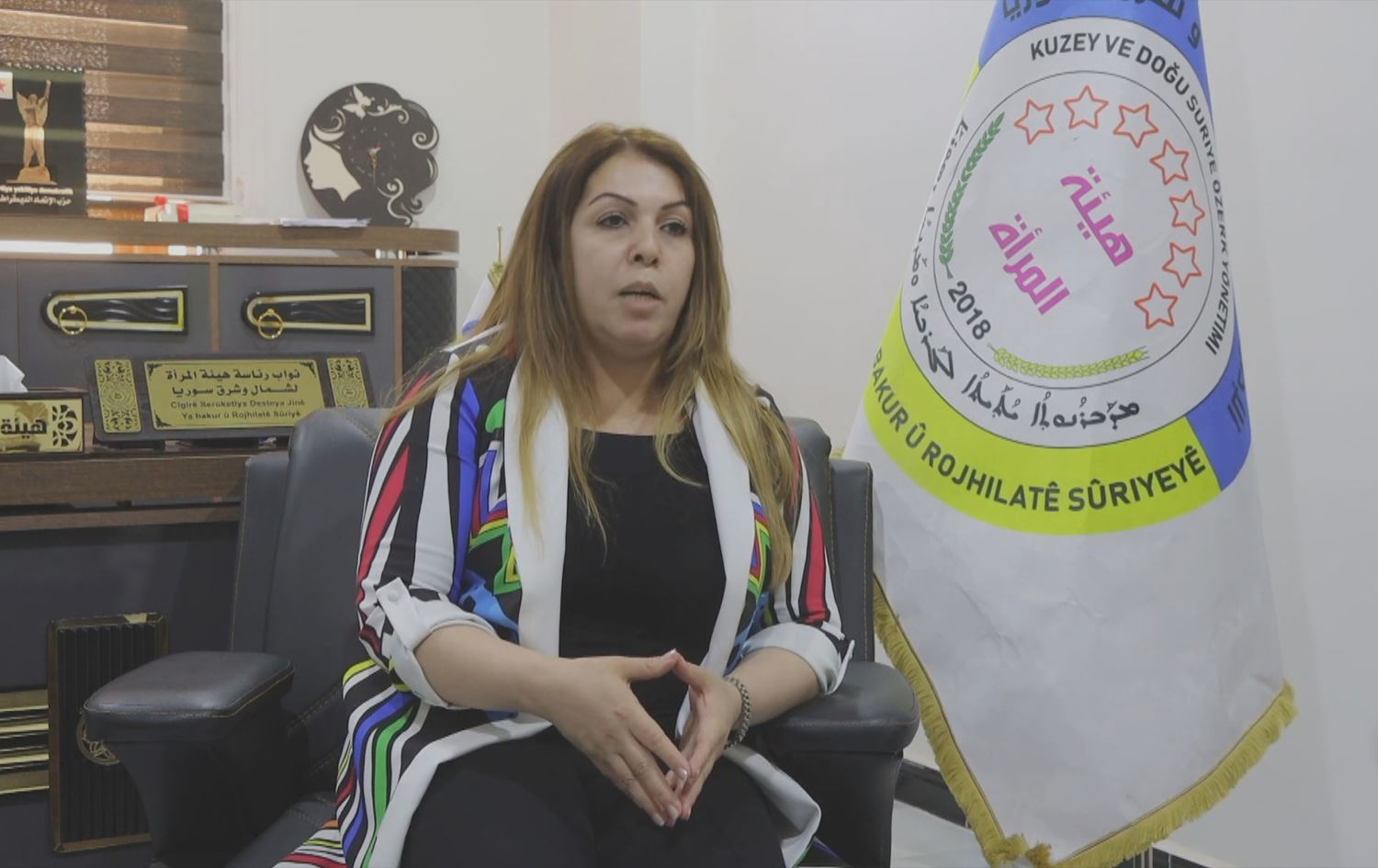Em berê xwe didine hemû wan jinên ku derfet li cem wan nebû, da ji bendên xwe rizgar bibin, li civakên Rojhilata Navîn û li Sûriyê, ku bi hebûna wê karînê li cem wan, bixwebawerî jî li cem wan hebe."