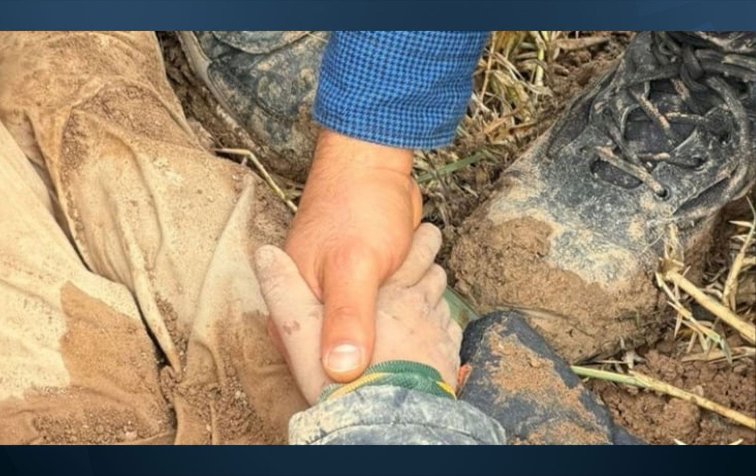 Hat diyarkirin ku nîvê laşê zarokî di bin axê de maye û ew bi vî awayî hatiye rizgarkirin.