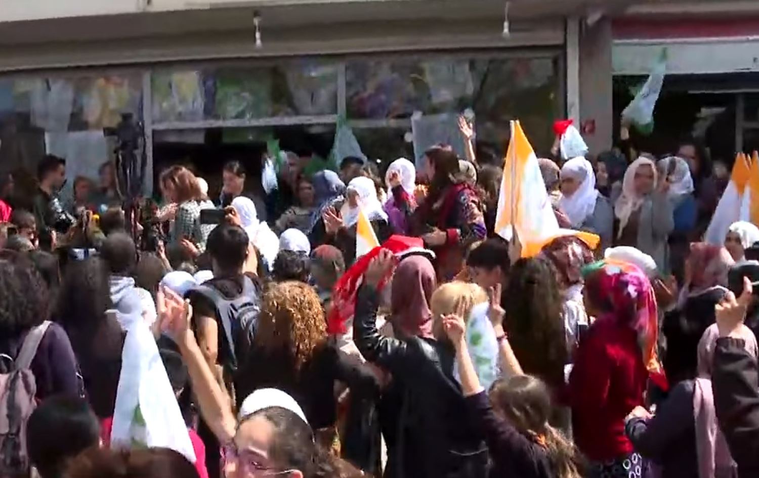 Kesên ku beşdarî merasîmê bûn slogan bilind kirin û meşxel pêxistin. Hejmareke zêde ya hêzên ewlakariyê jî li ber deriyê ofîsa hilbijartinan a YSPê hatibûn bicîhkirin û çend caran alozî derketin.