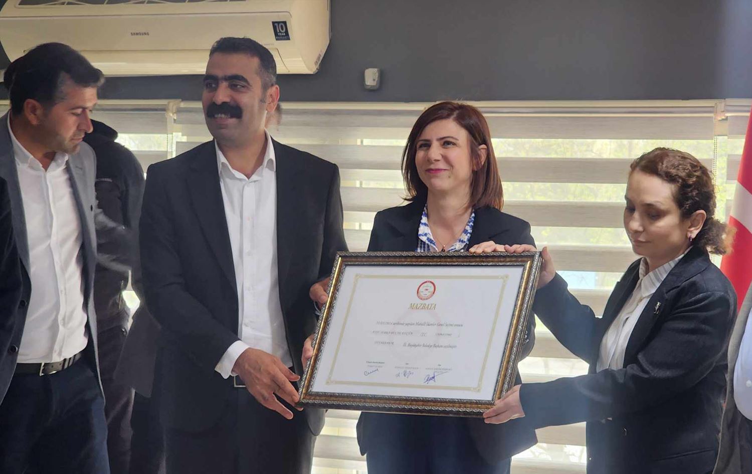 Li parêzgeha Amedê hevserokên şaredariyan ên navçeyên ku DEM Partiyê bi dest xistin jî mazbatayên xwe standin.