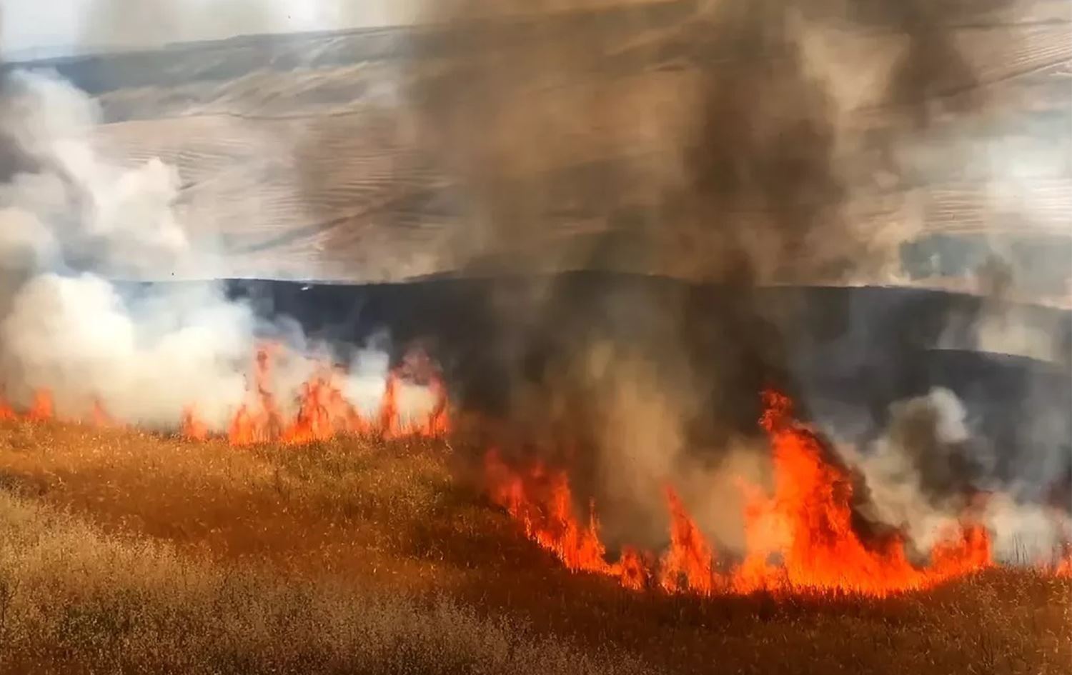 Ji ber hêza bayê agir zû li nav zeviyê belav bû û rûbereke mezin a zeviyê şewitand.