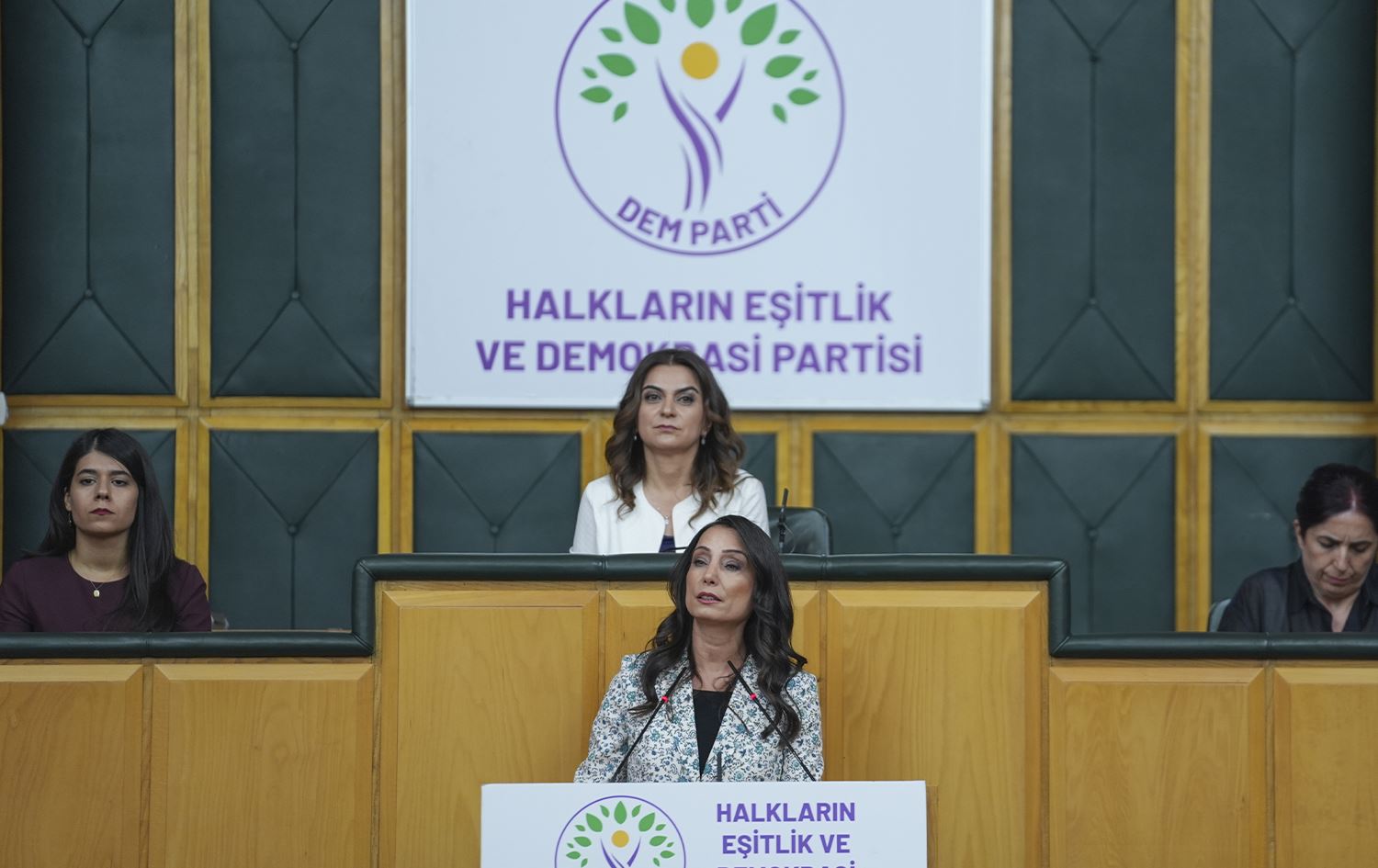 Hevseroka Partiya Gelan a Wekhevî û Demokrasiyê (DEM Partî) Tulay Hatîmogullari di civîna koma partiya xwe ya li Parlamentoya Tirkiyeyê de axivî.