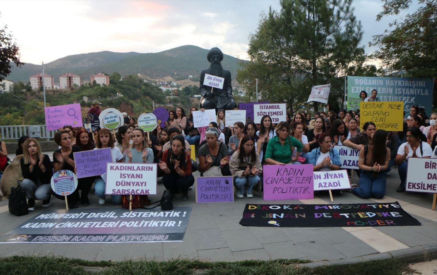 Li Dêrsimê jî li ser banga Platforma Jinan jin û nûnerên rêxistinên civaka sivîl li Kolana Hunerê kom bûn û bi bilindkirina wêne û posterên jinên hatine kuştin û winda bûne heta Qada Seyîd Riza meşiyan û wan li wir daxuyaniyek da.