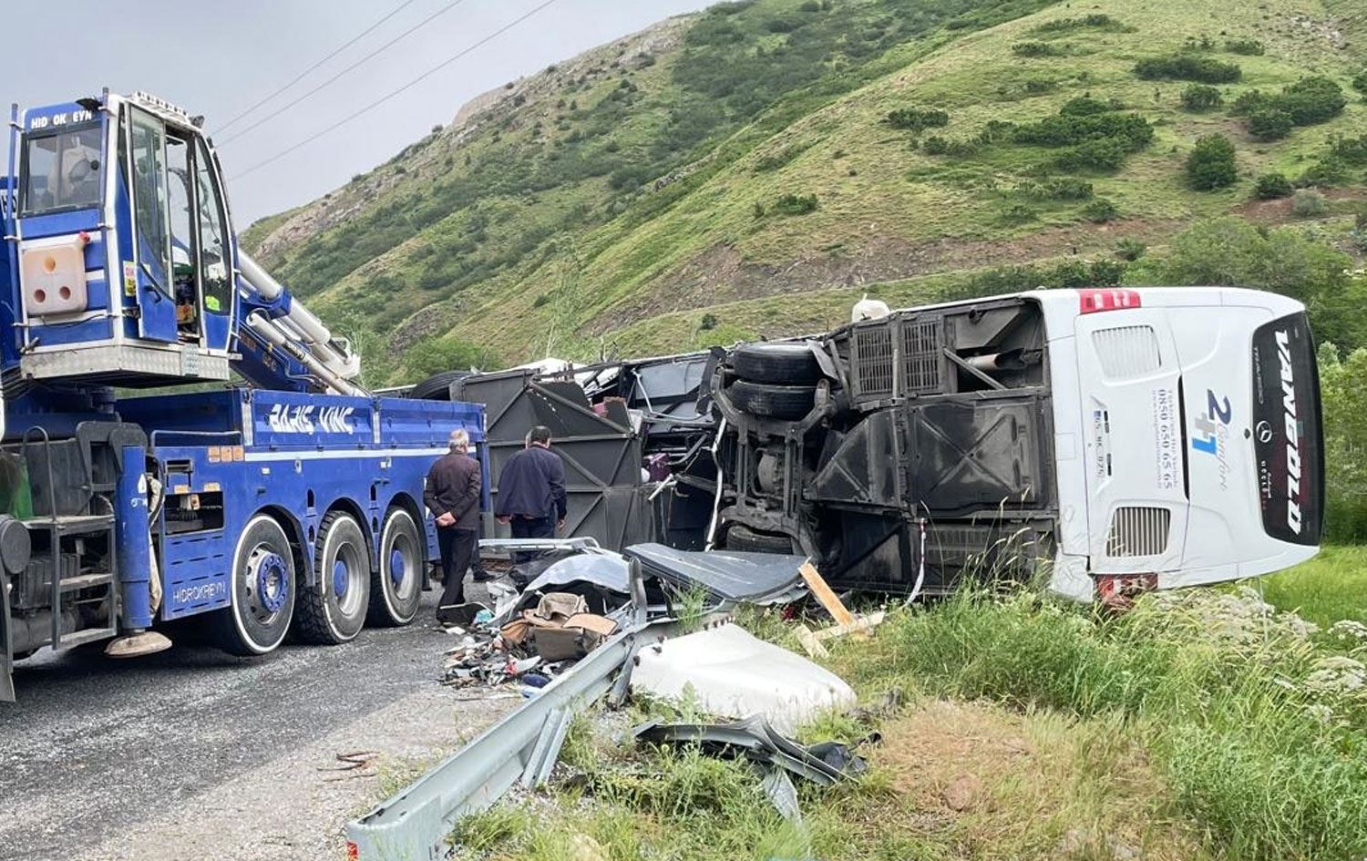 Di qezayê de ajokarê otobusê û rêwiyekî otobusê mirin û 30 kes birîndar bûn ku birînên 4an xedar in.