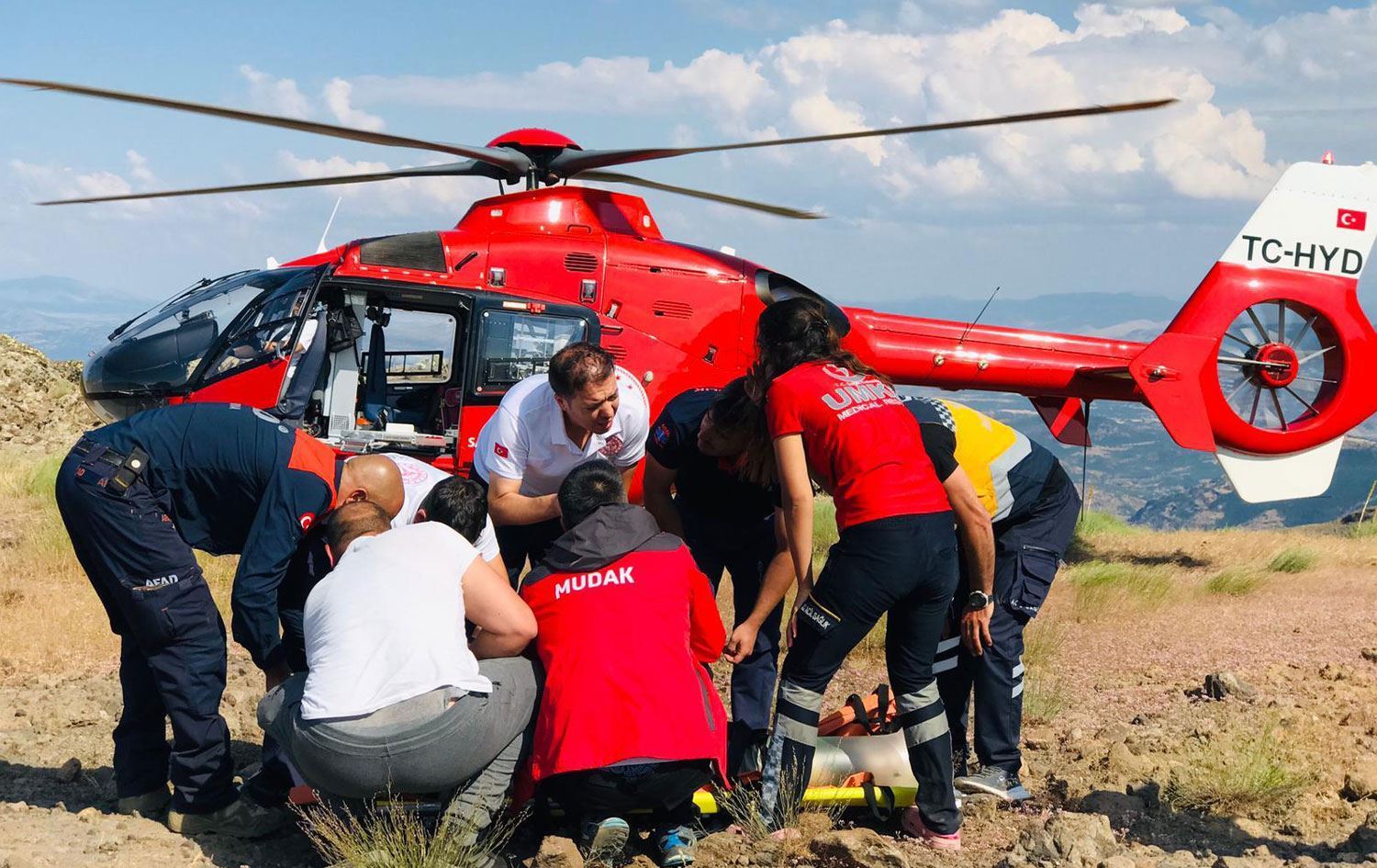 Ekîban welatiyê birîndar ê 72 salî bi darbestê ji cihên asê anîn xwarê û paşê bi helîkoptera ambulansê ya ku ji Meletiyê hatibû navçeyê, ew rakirin Nexweşxaneya Dewletê ya Dêrsimê.