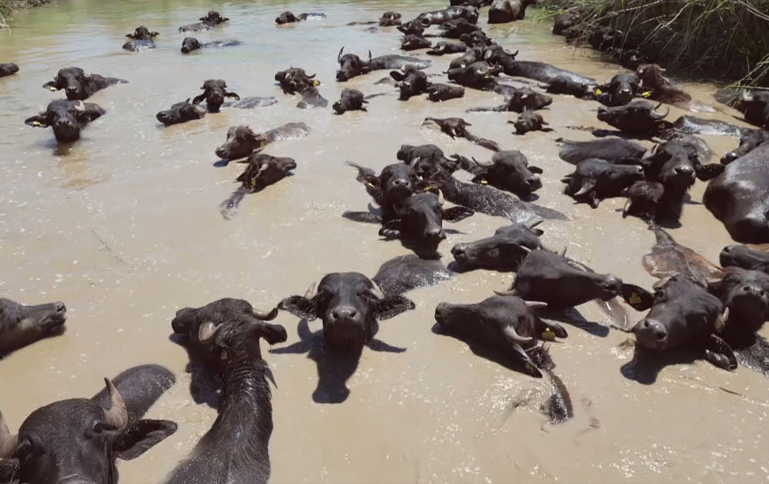 Gamêş zêde êm dixwin. Gamêşek bi qasî du dewaran dixwe.