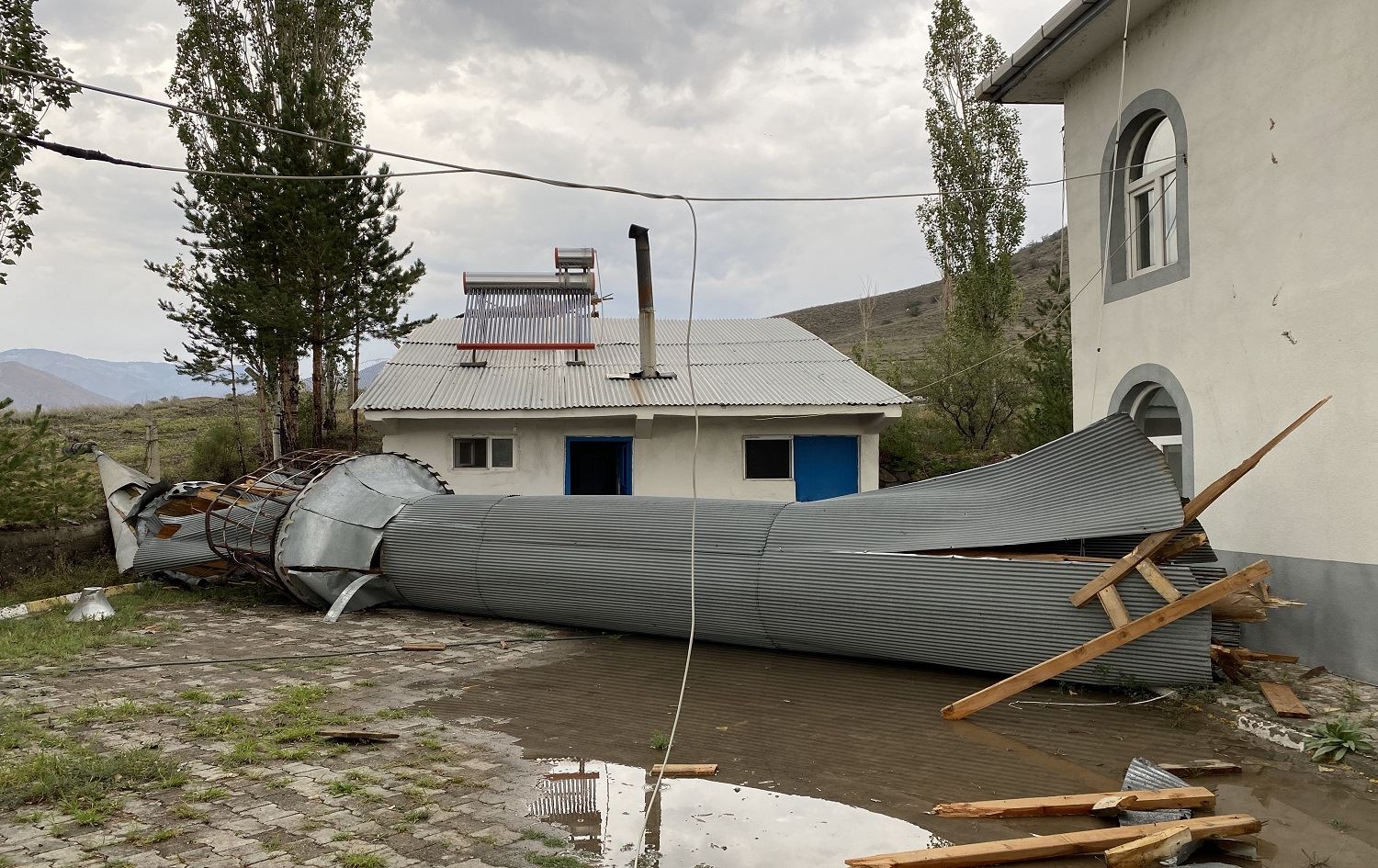 Ji niştecihên taxê Metîn Kaya got, "Mala herî nêzîkî mizgeftê ya min e. Ji ber baran û bagerê minareya ji daran a 30 salî ket. Şikir ji Xwedê re ku tiştek bi me nehat."