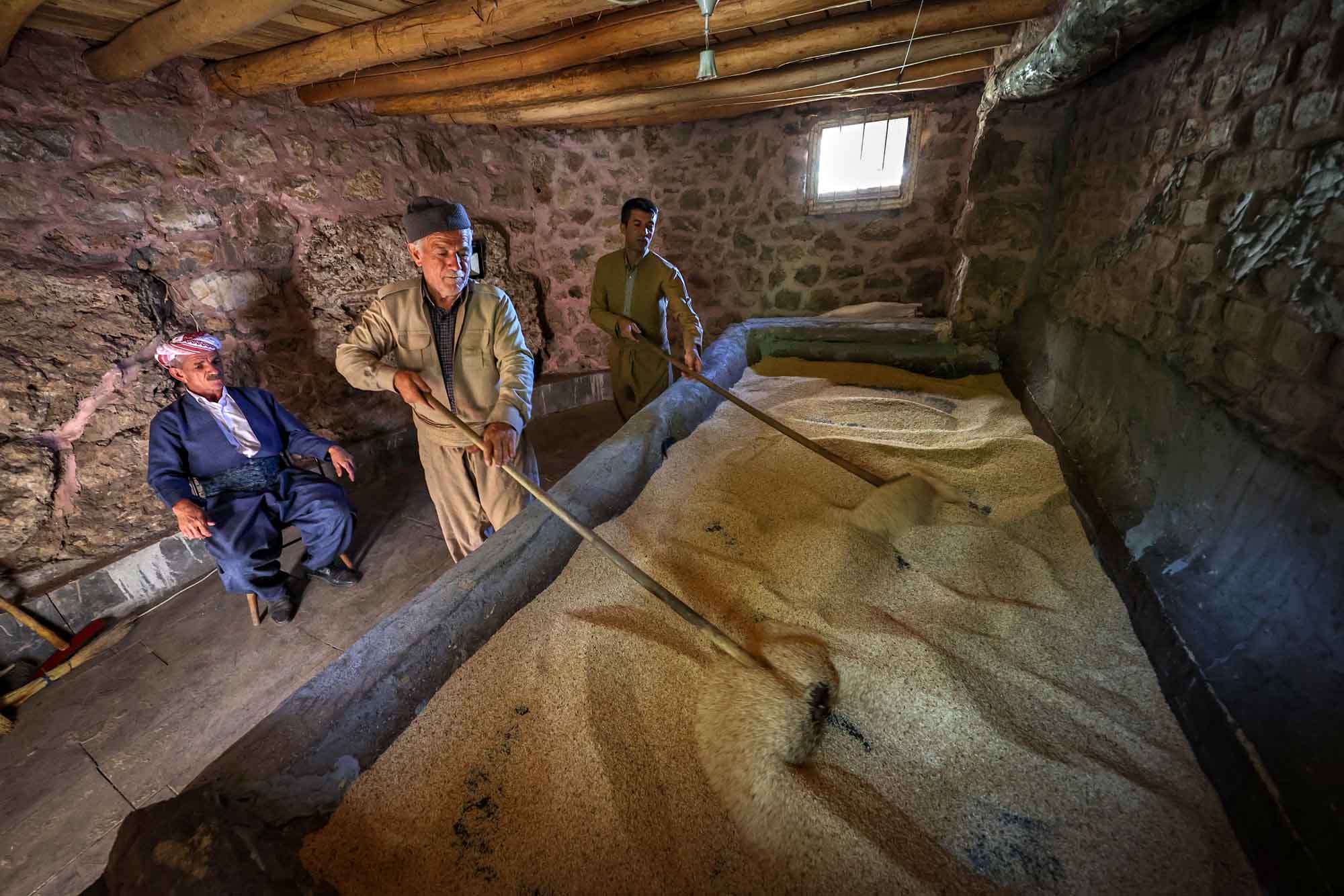 Li navçeya Çelê ya ser bi parêzgeha Colemêrgê ya Bakurê Kurdistanê ve, malbatên Kurd kuncî di aşên kevirîn ên dîrokî de dihêrin û dikin Tehîn.