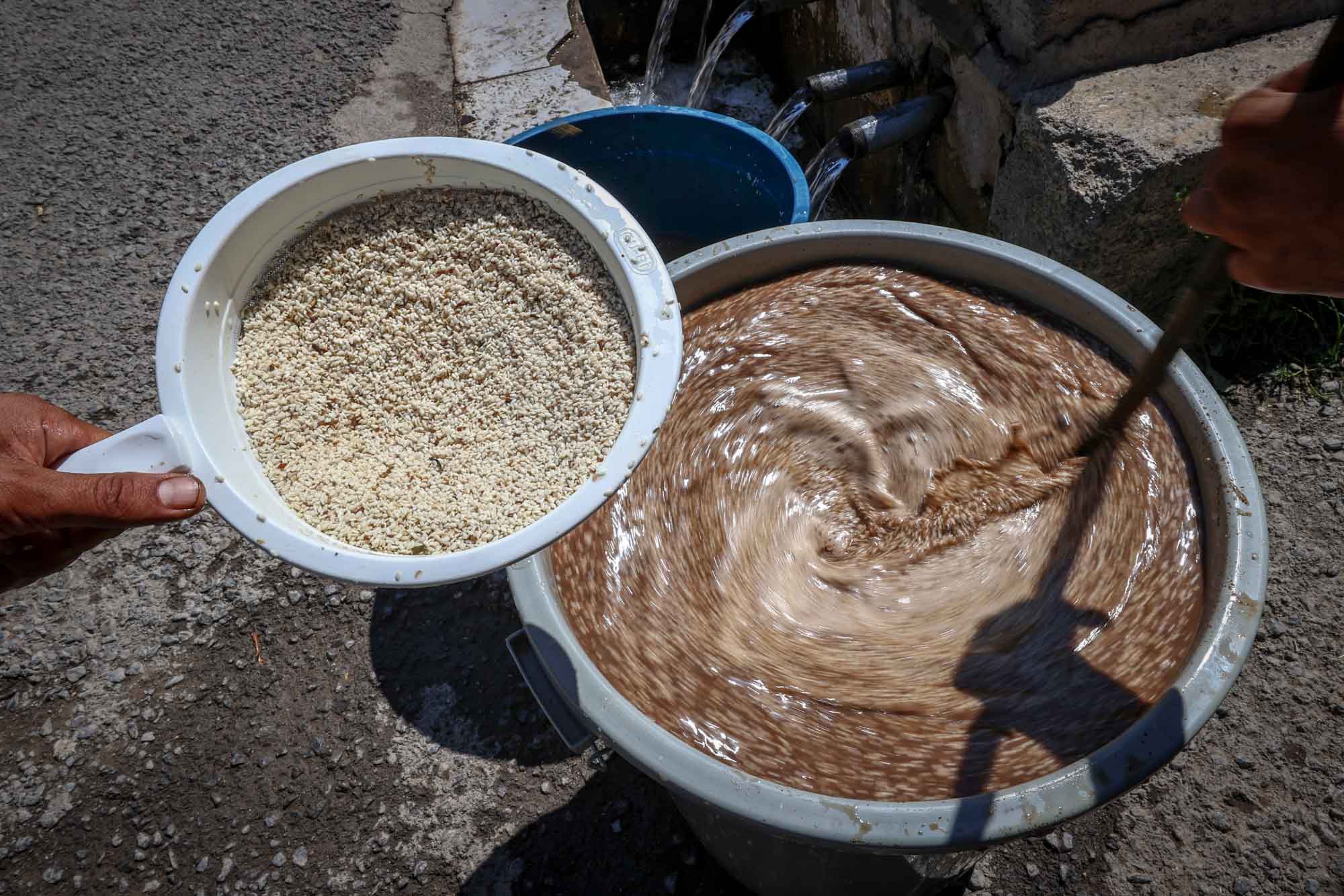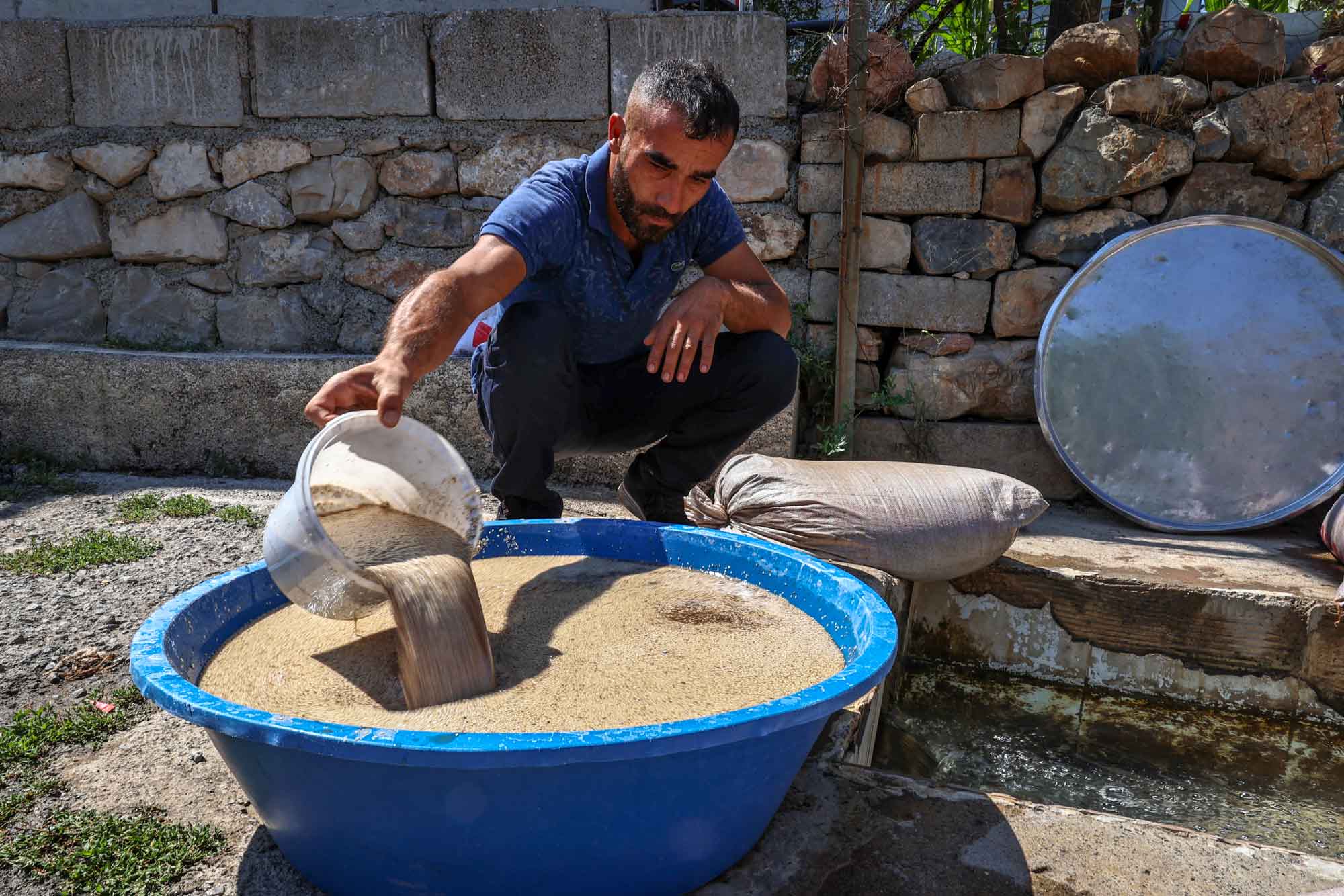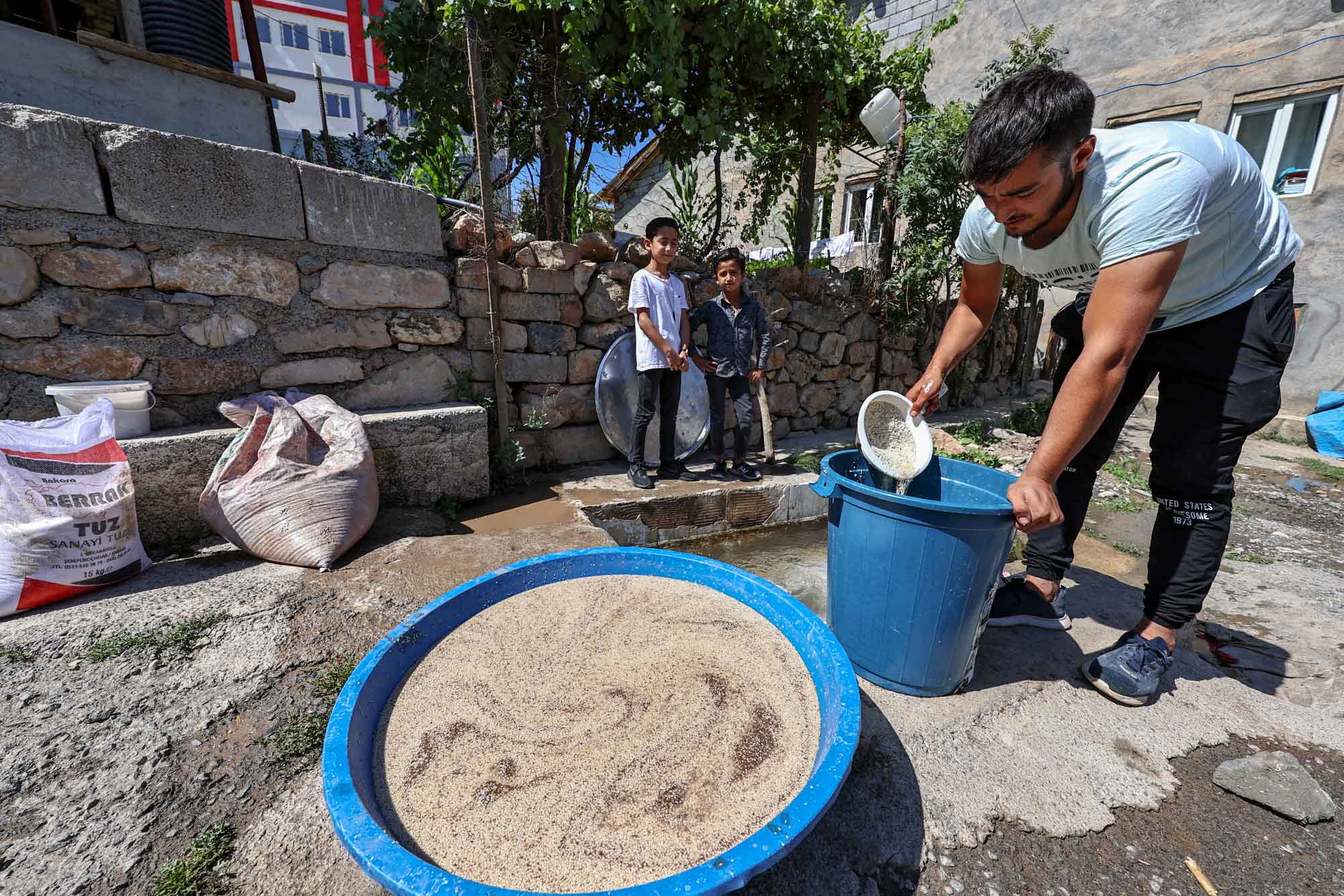 Malbata Kurd a ku di wêneyên ku roja Sêşemê hatine kişandin de, tê xuyakirin bi hêrandina kuncî bi awayê kevneşopî û bi rêya aşê avî Tehînê amade dikin.