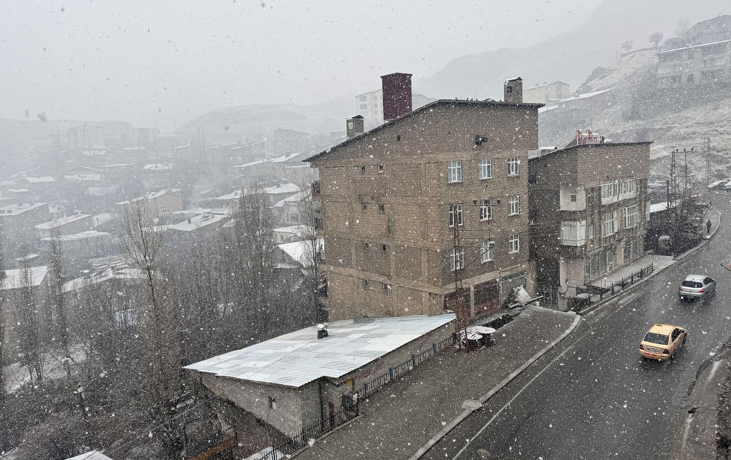 Hewlêr (Rûdaw) - Li parêzgeha Colemêrgê ya Bakurê Kurdistanê piştî baranê berfê dest pê kir û navenda bajêr spî bû.