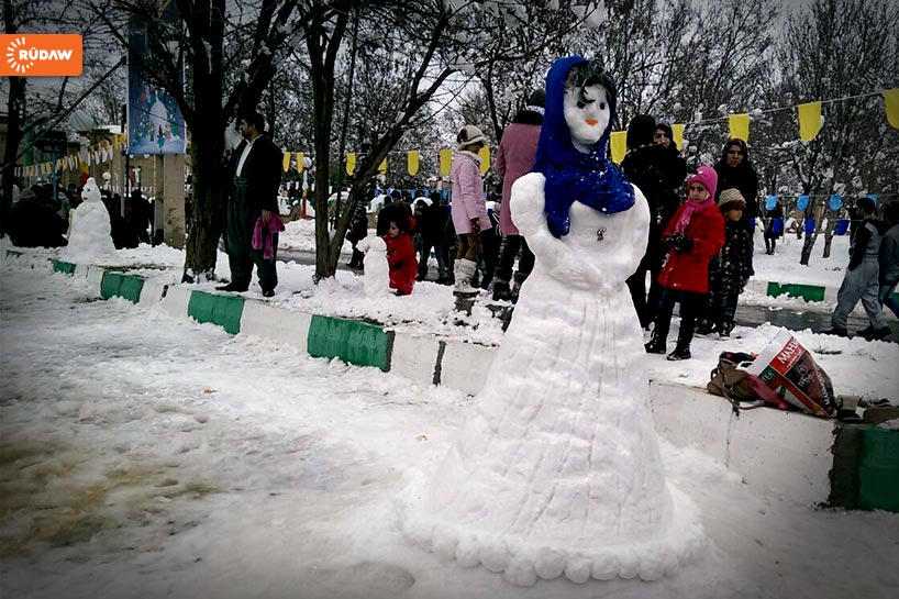 مەریوان.. دروستکردنی بووکە بەفرینە لە رۆژێکی بەفریدا 9