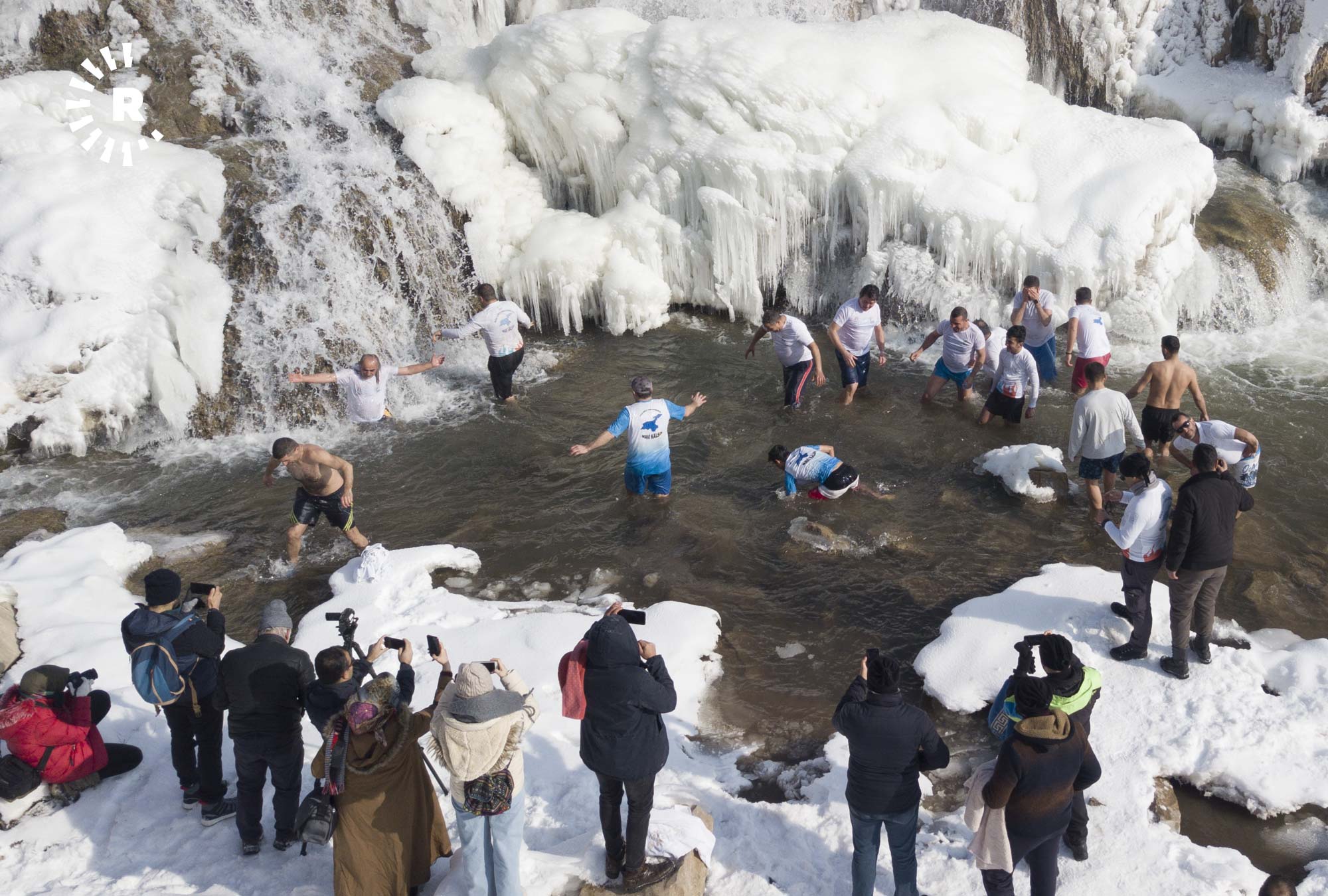 Çalakî bi piştgiriya şaredariya navçeyê hat lidarxistin. Ji endamên komeleyê hinekan di nav ava sûlavê ku 20 metre ji jor ve diherike de avjenî kir.