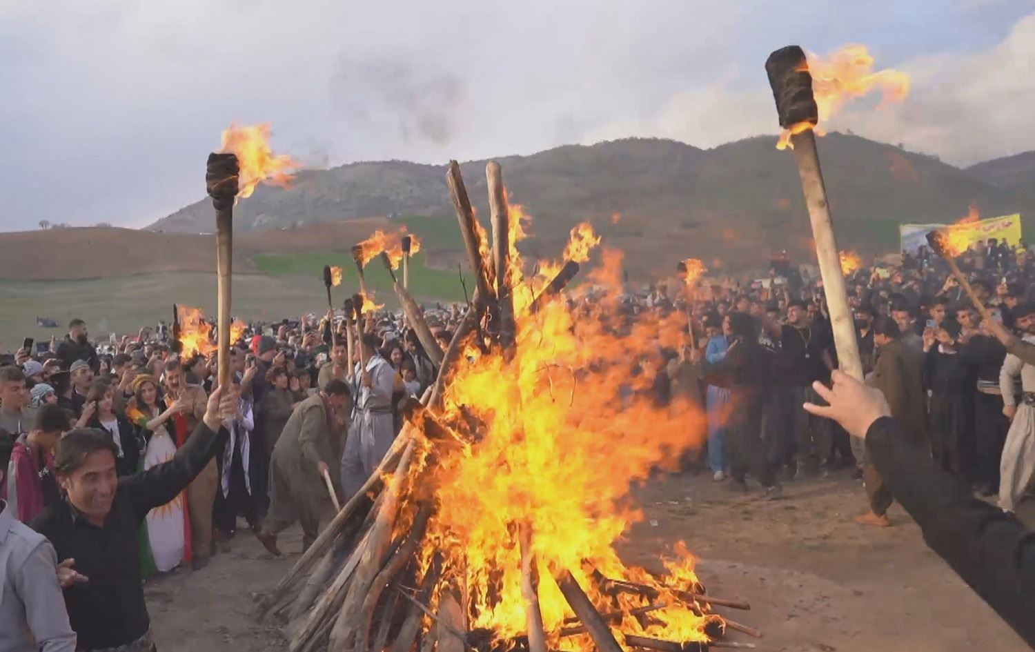 Hewlêr (Rûdaw) – Li bajarê Ciwanroyê yê Rojhilatê Kurdistanê, bi amadebûna bi hezaran kesan agirê Newrozê hat pêxistin.