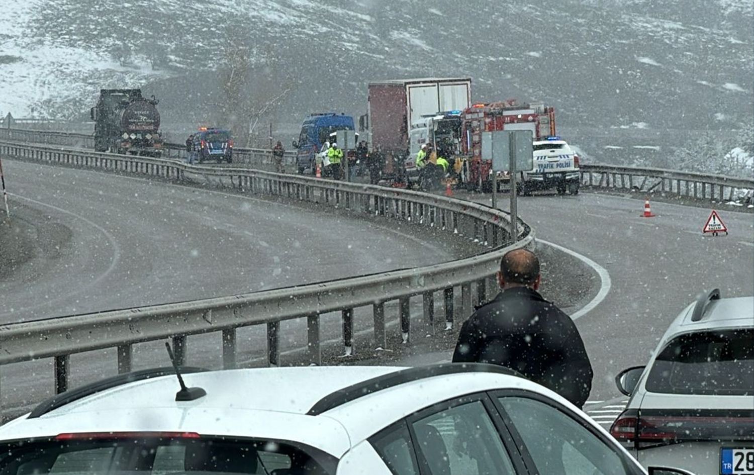 Piştî demekê li cihê qezayê otomobîleke din li barhilgira bi plakaya Îranê qelibî.