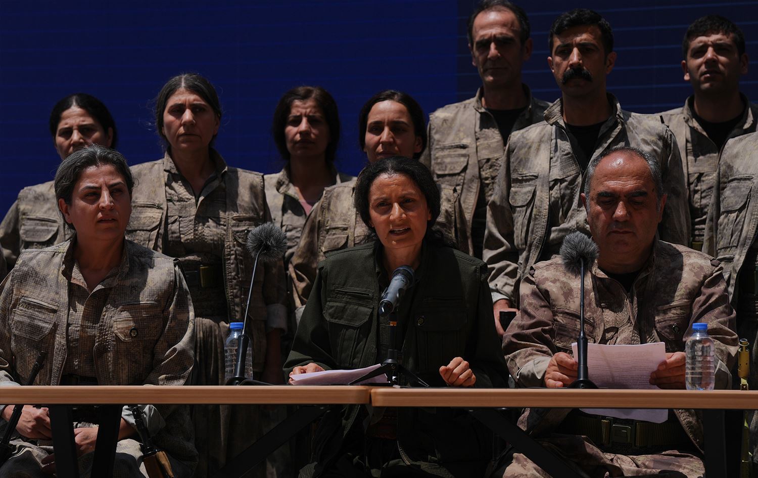 Besê Hozat piştî axaftineke kurt, bi navê komê daxuyanî bi Tirkî xwend. Piştre jî Nedîm Seven bi Kurdî xwend.