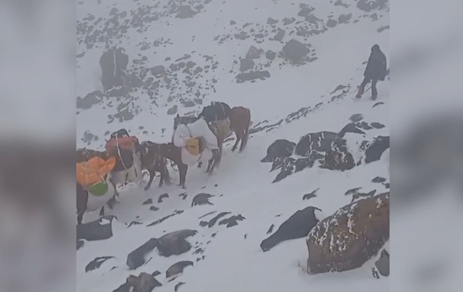 Ji cihê kampê ku 4 hezar û 200 metre bilind e û heta deverên ku ji asta deryayê bilind 2 hezar metreyan in berfê dest pê kiriye û car car pûk dibare û dibe ba û bapêç.