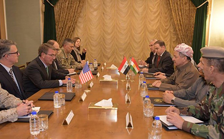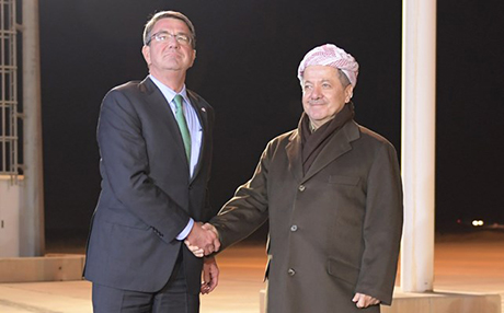 Hewlêr (Rûdaw) – Wezîrê Berevaniya Amerîkayê Ashton Carter di civîna li gel Serokê Herêma Kurdistanê Mesûd Barzanî de ragihand, Washington pabendî wê rêkevtinê dibe, ku li gel Wezareta Pêşmerge û ji bo alîkariya serbazî û darayî ya Hêza Pêşmerge ya Kurdistanê heye.