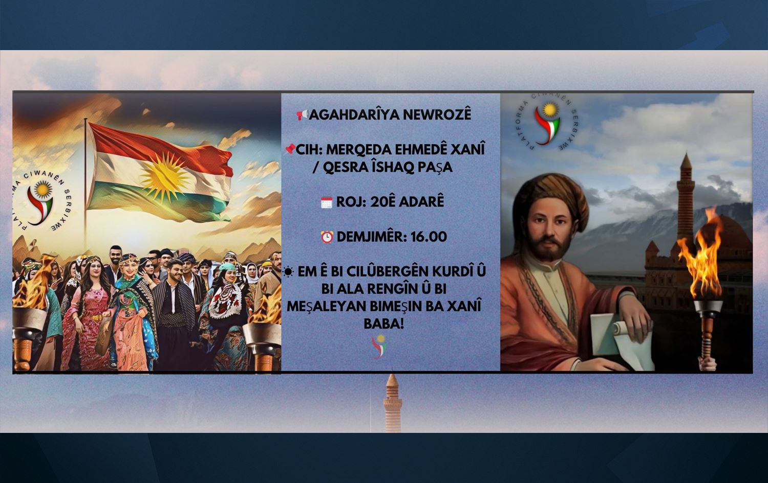 Platforma Ciwanên Serbixwe dê li Bazîdê li kêleka Qesra Îshaq Paşa û gora Ehmedê Xanî pîrozbahiyeke Newrozê saz bike.