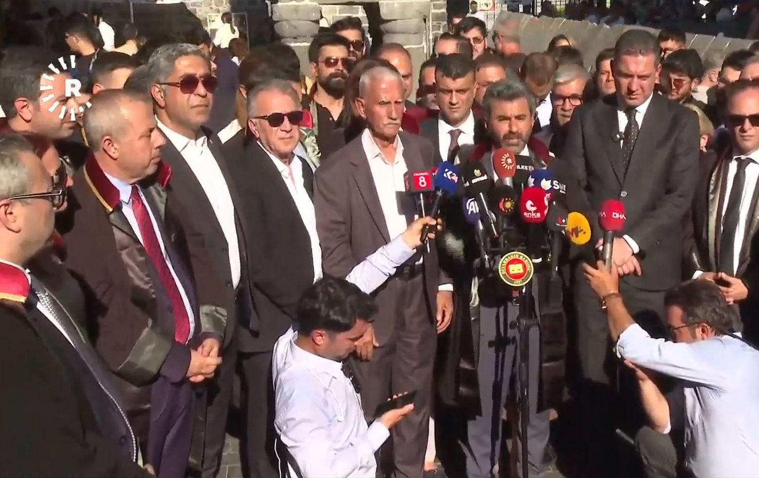 Hinek parlamenterên DEM Partiyê, parlementerê CHPyê Sezgin Tanrikulu û serokên çend baroyan li ber Mînareya Çarling a Sûra Amedê cihê ku Tahîr Elçî hatî kuştin, civiyan û daxuyanî da.