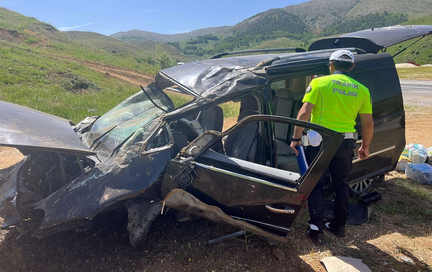 Otomobîla ku Y.A. (20) diajot, li ser rêya Sêwaz-Erzinganê nêzîkî gundê Zimakê qulibî / Wêne: AA