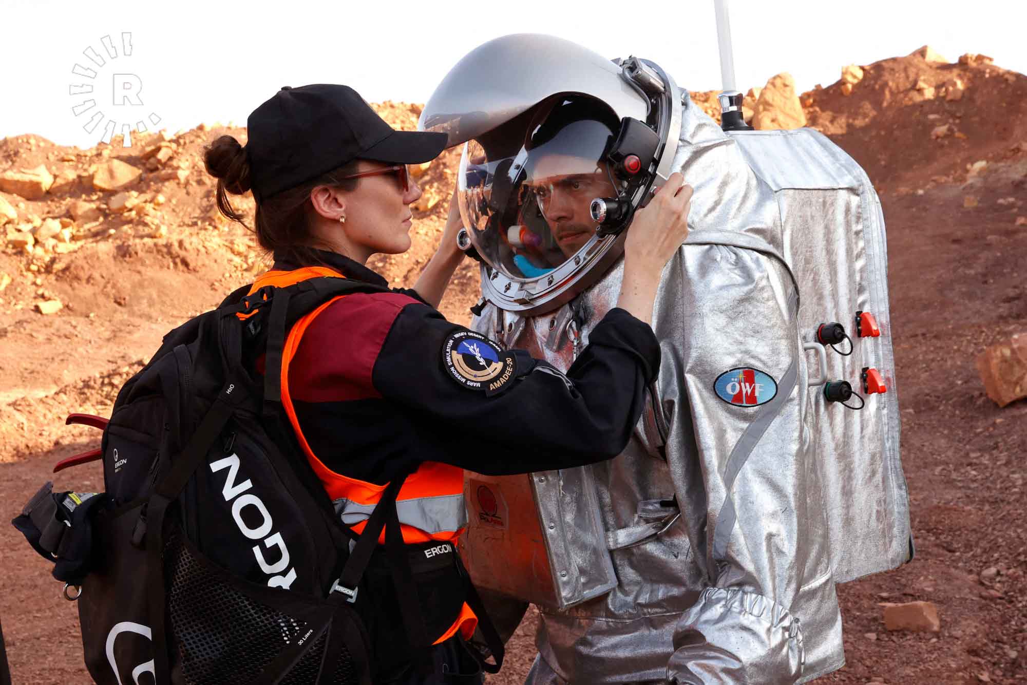 Astronotên Portugalî, Spanyayî, Alman, Hollandî, Nemsayî û Îsraîlî, mehekê bi kincên esmanî bo heyama mehekê rahênanê dikin û bi rengekî ku li Marsê muameleyê li wan bikin, ji jiyana asayî qut dibin.