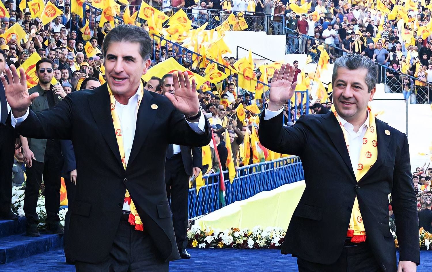 Partiya Demokrat a Kurdistanê (PDK) li Stadyûma Dihokê di çarçoveya kampanyaya hilbijartinên Parlamentoya Kurdistanê de bi beşdariya alîkarên Serokê PDKyê Nêçîrvan Barzanî û Mesrûr Barzanî mîtîngek li dar xist.