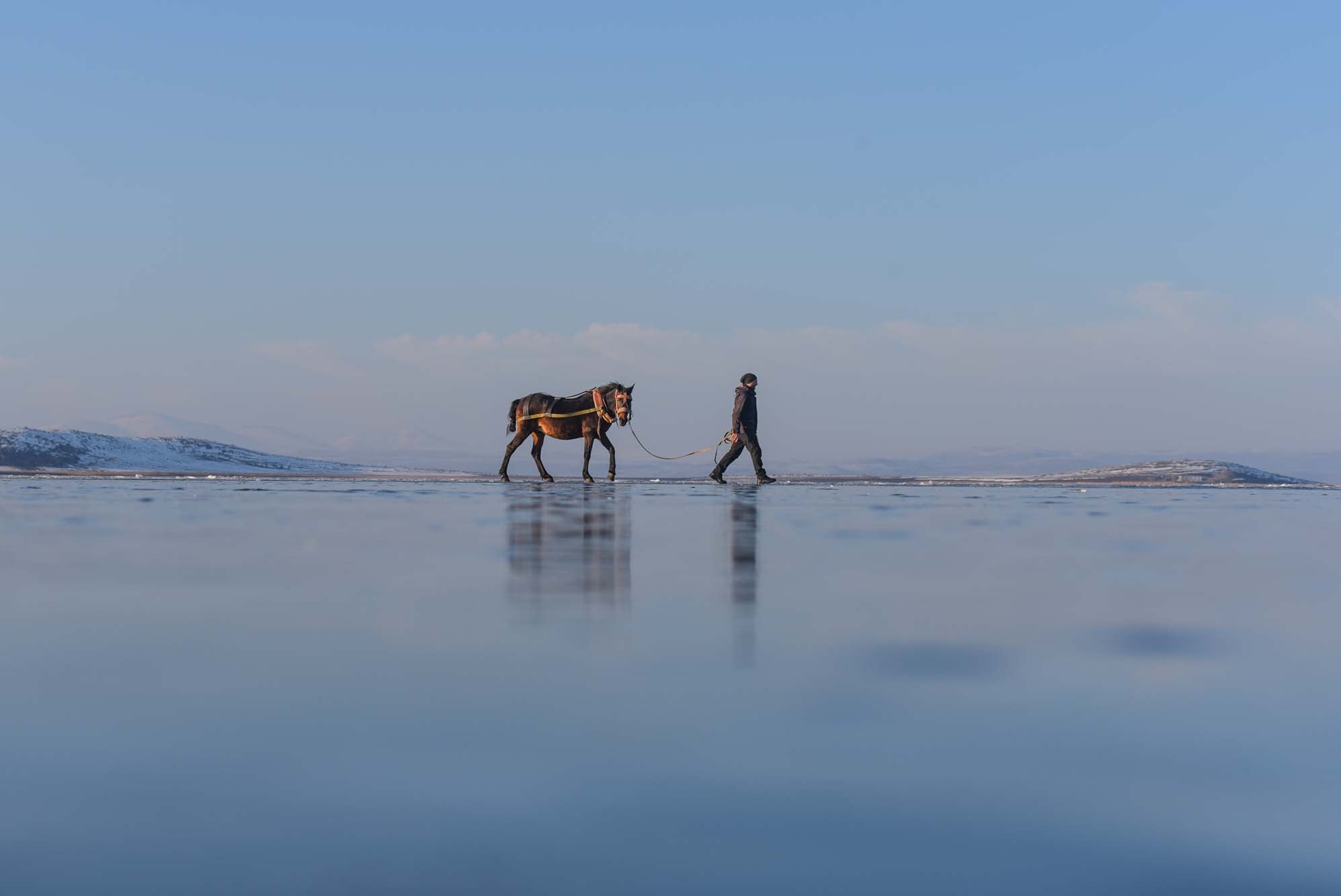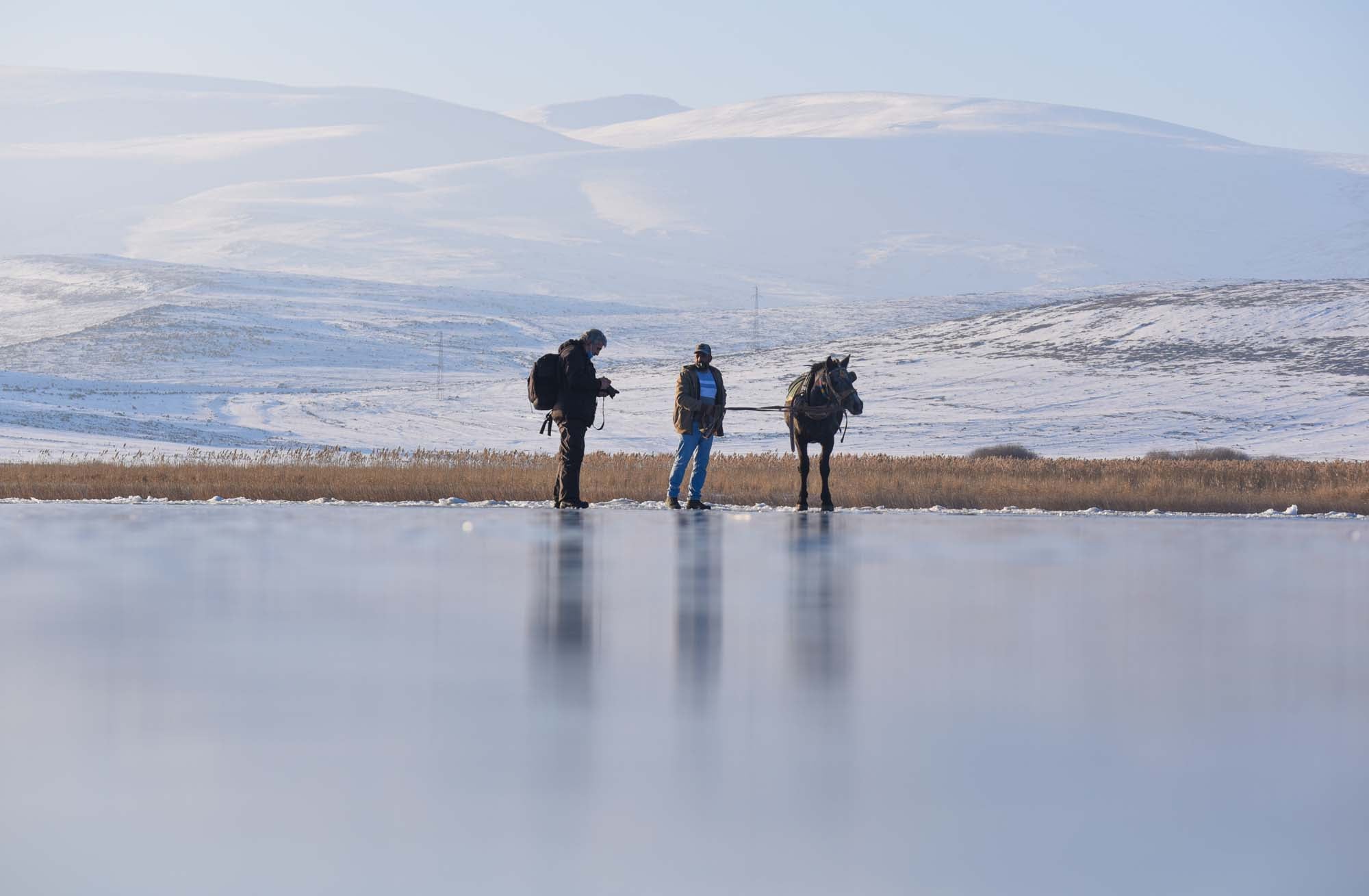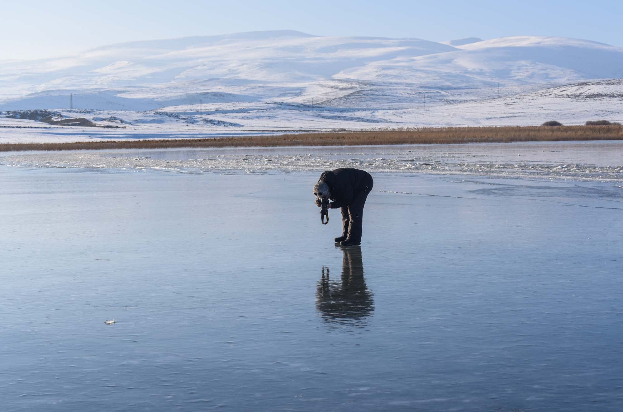 Beşek rûyê Gola Çildirê ya di nav sînorê Erdexan-Qersê deqerisî û dîmenên balkêş derketin holê.