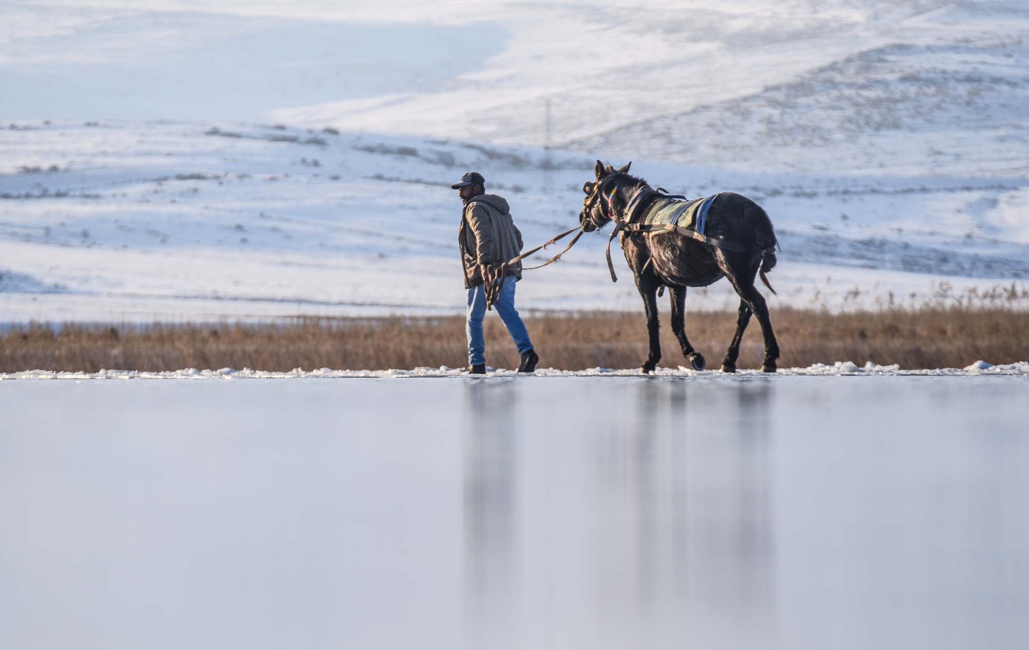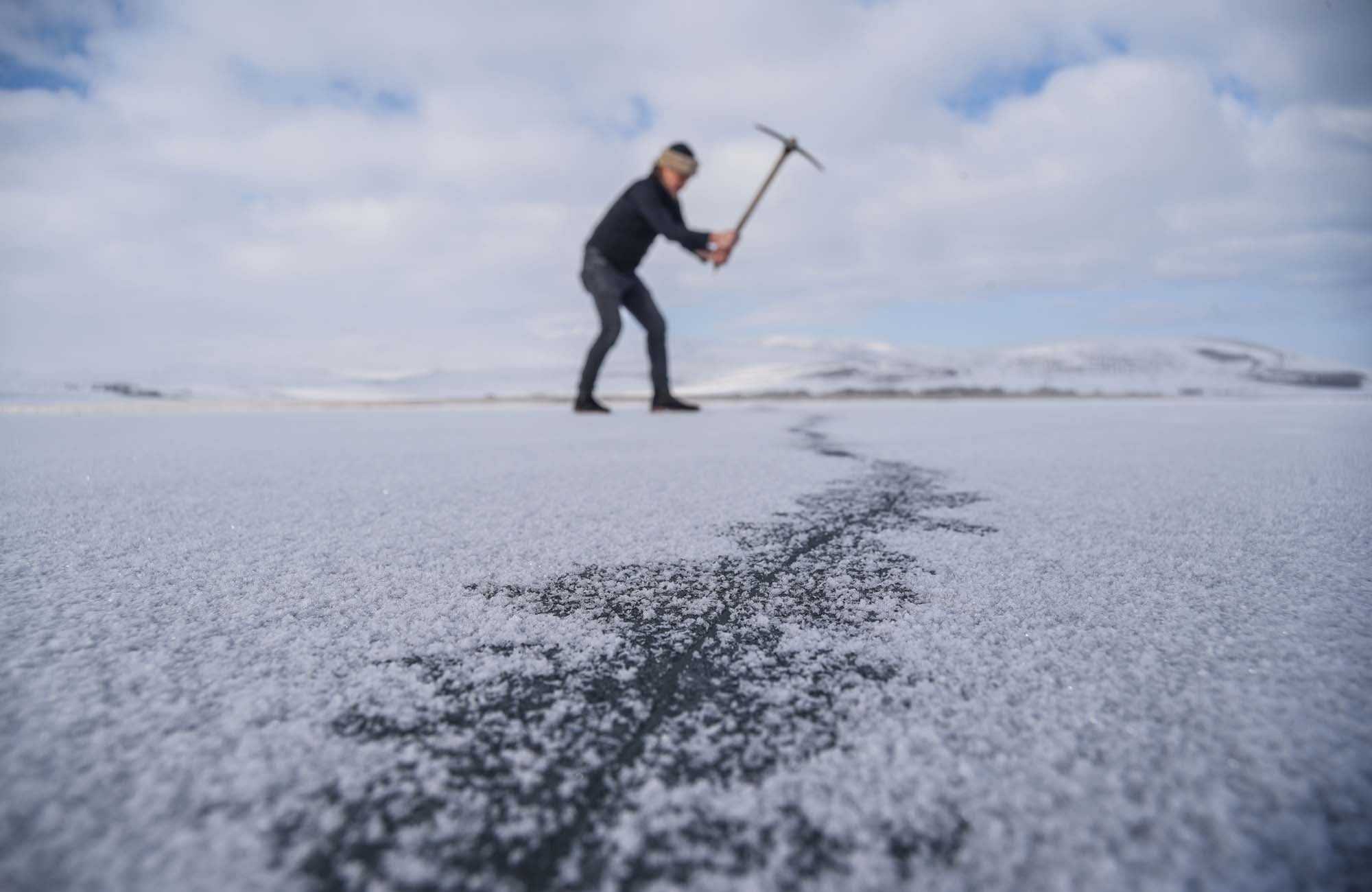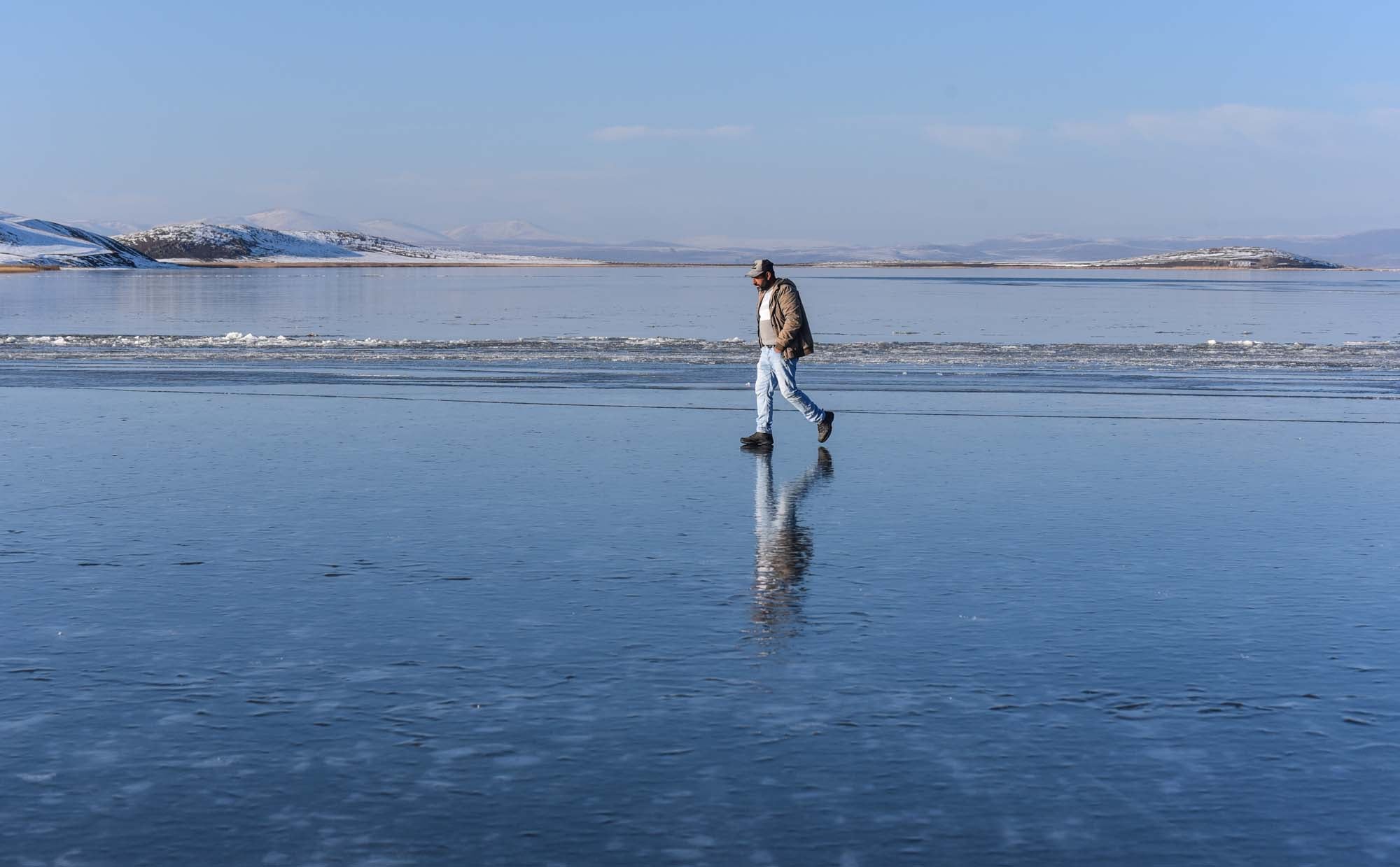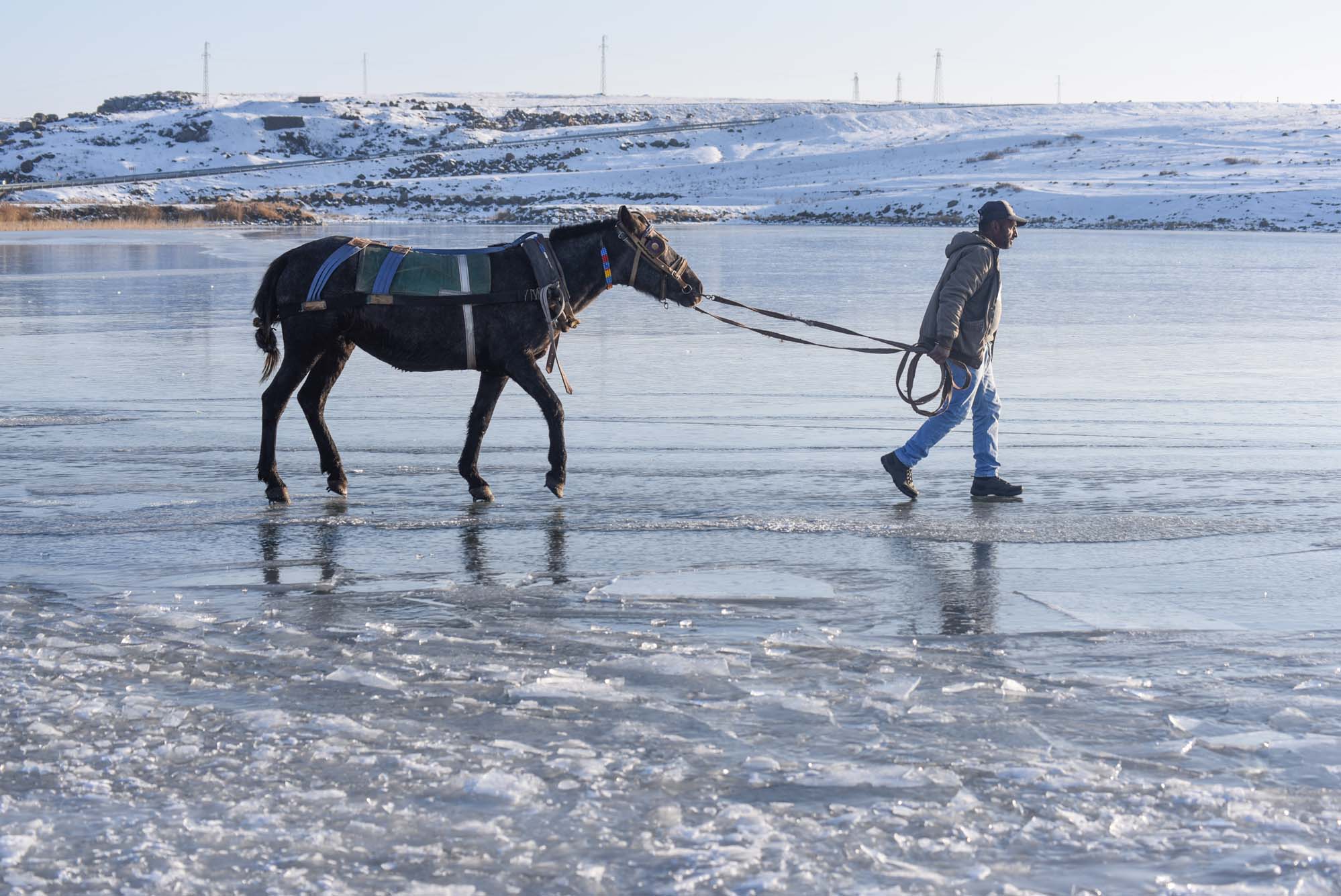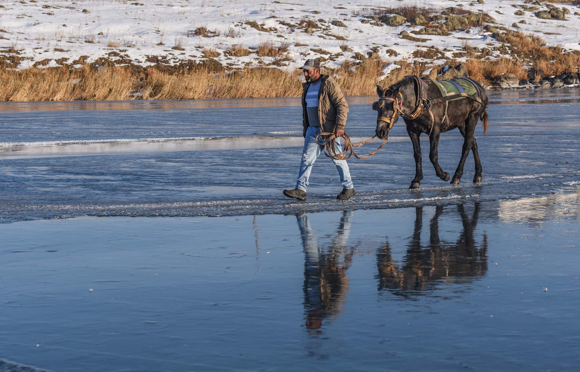 Hinek welatî li herêma gundê Taşbaşiya ser navçeya Zarûşadê ya Qersê çûn ser gola beşekê wê qeşa girtiye û meşiyan.