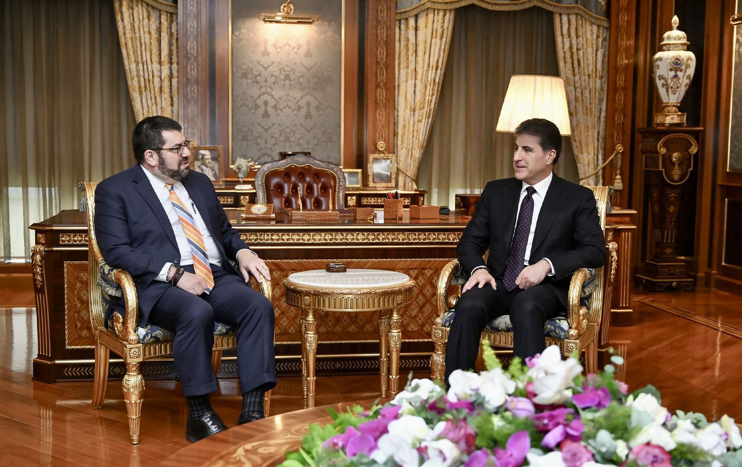 Hewlêr (Rûdaw) - Serokê Herêma Kurdistanê Nêçîrvan Barzanî li Hewlêrê bi Karguzarê Balyozxaneya Amerîkayê ya Bexdayê David Berger re civiya.