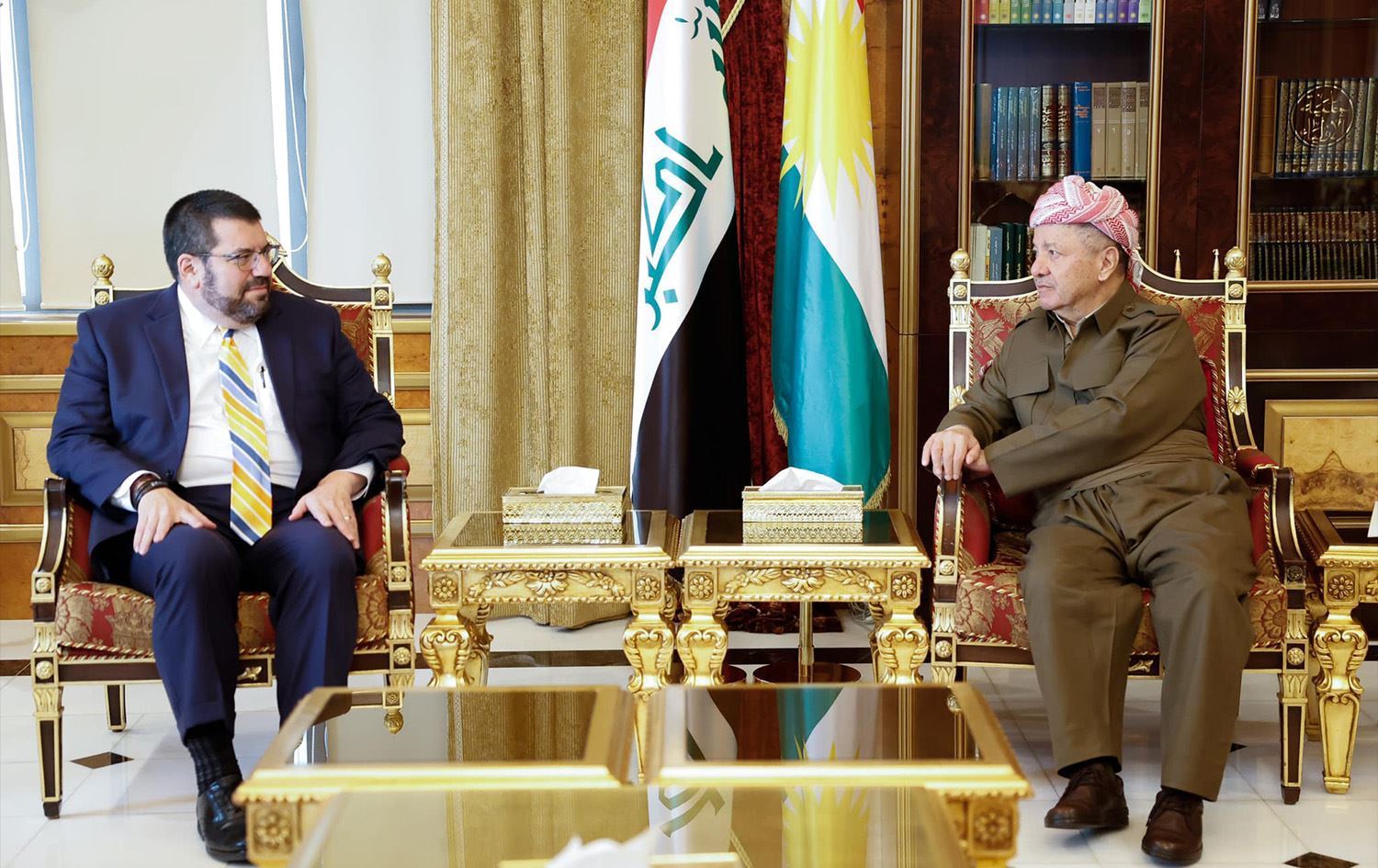 Serok Mesûd Barzanî li navçeya Selahedînê ya Hewlêrê Karguzarê Balyozxaneya Amerîkayê ya Bexdayê David Berger qebûl kir.