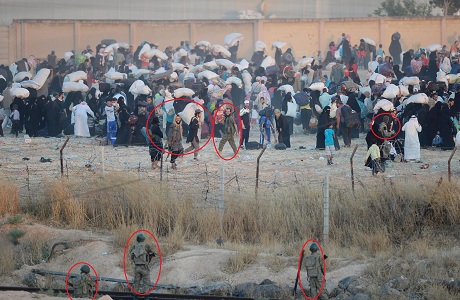 Li gorî wêne û dîmenên ku hatine belavkirin, çekdarên DAIŞê bi zora çekan ew sivîlên ku li ser sînorê Tirkiyê kom bûne, dîsa vedigerînin.