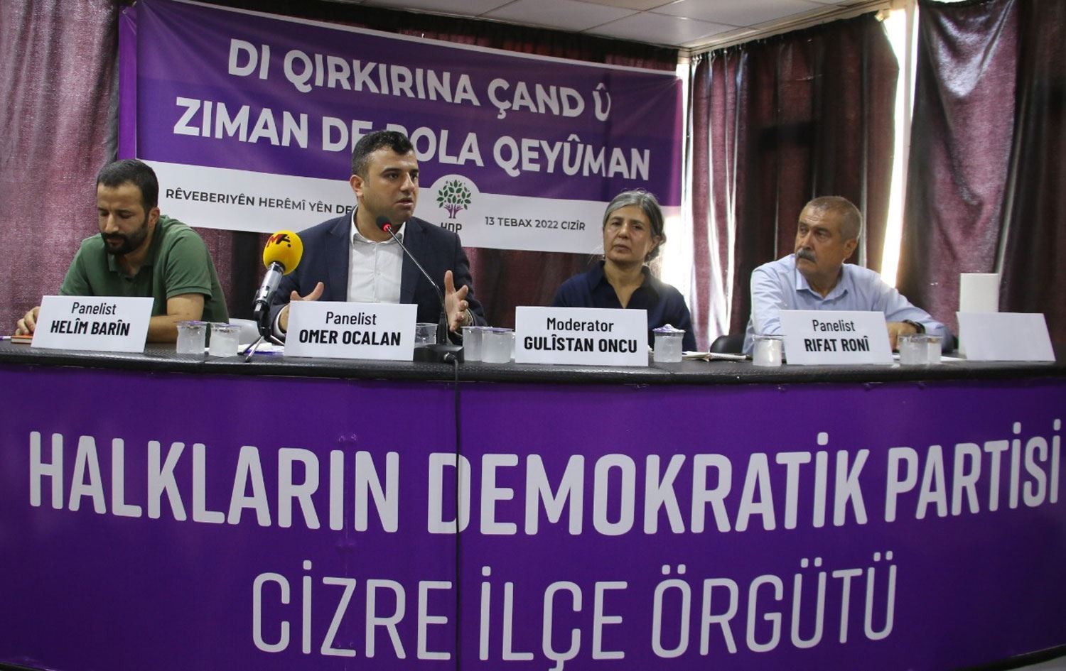 Roja 13ê Tebaxa 2022an li Şirnexê Rêxistina navçeyê ya Cizîrê ya Partiya Demokratîk a Gelan (HDP) panela bi navê "Di qirkirina çand û ziman de rola qeyûman" li dar xist.