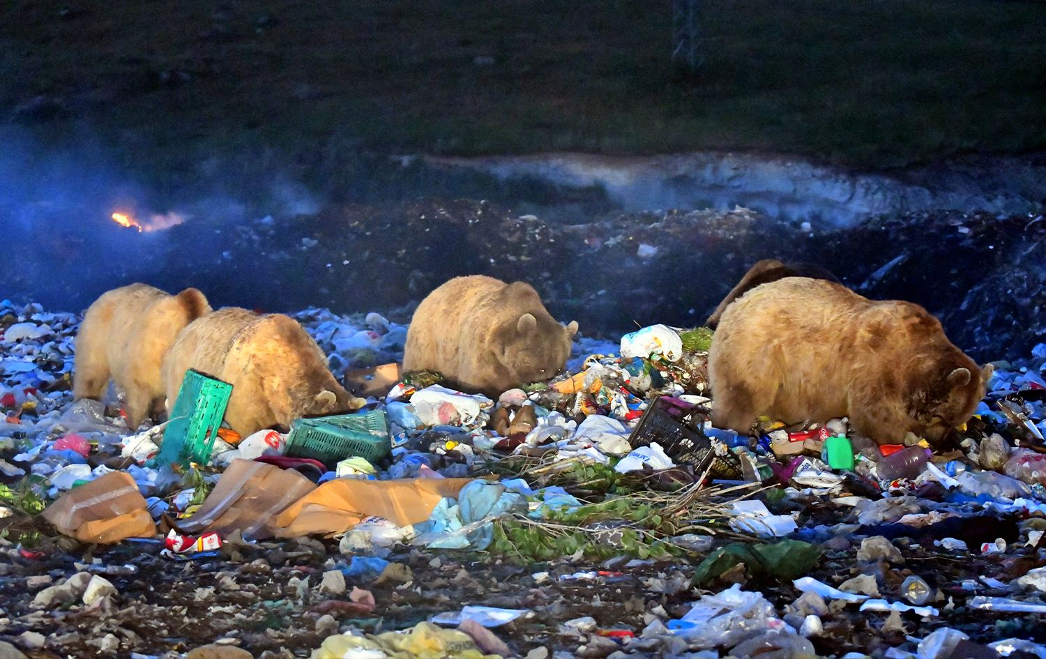 Hewlêr (Rûdaw) - Li navçeya Qamuşanê ya parêzgeha Qersê çend hirç ji serê çiyayan dadikevin û dikevin nav gilêşa bajêr û li wir bi tiştên hatine avêtin zikê xwe têr dikin.