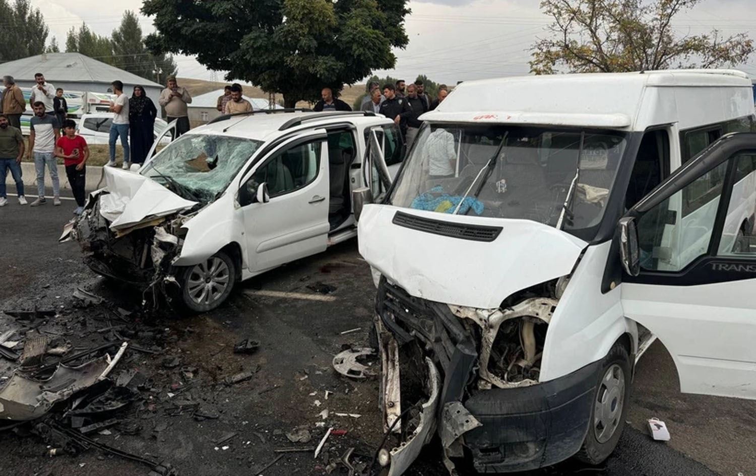 Mînîbusek û otomobîlek li ser wê rêya ku dikeve navbera Agirî û Wanê li hev qelibîn.