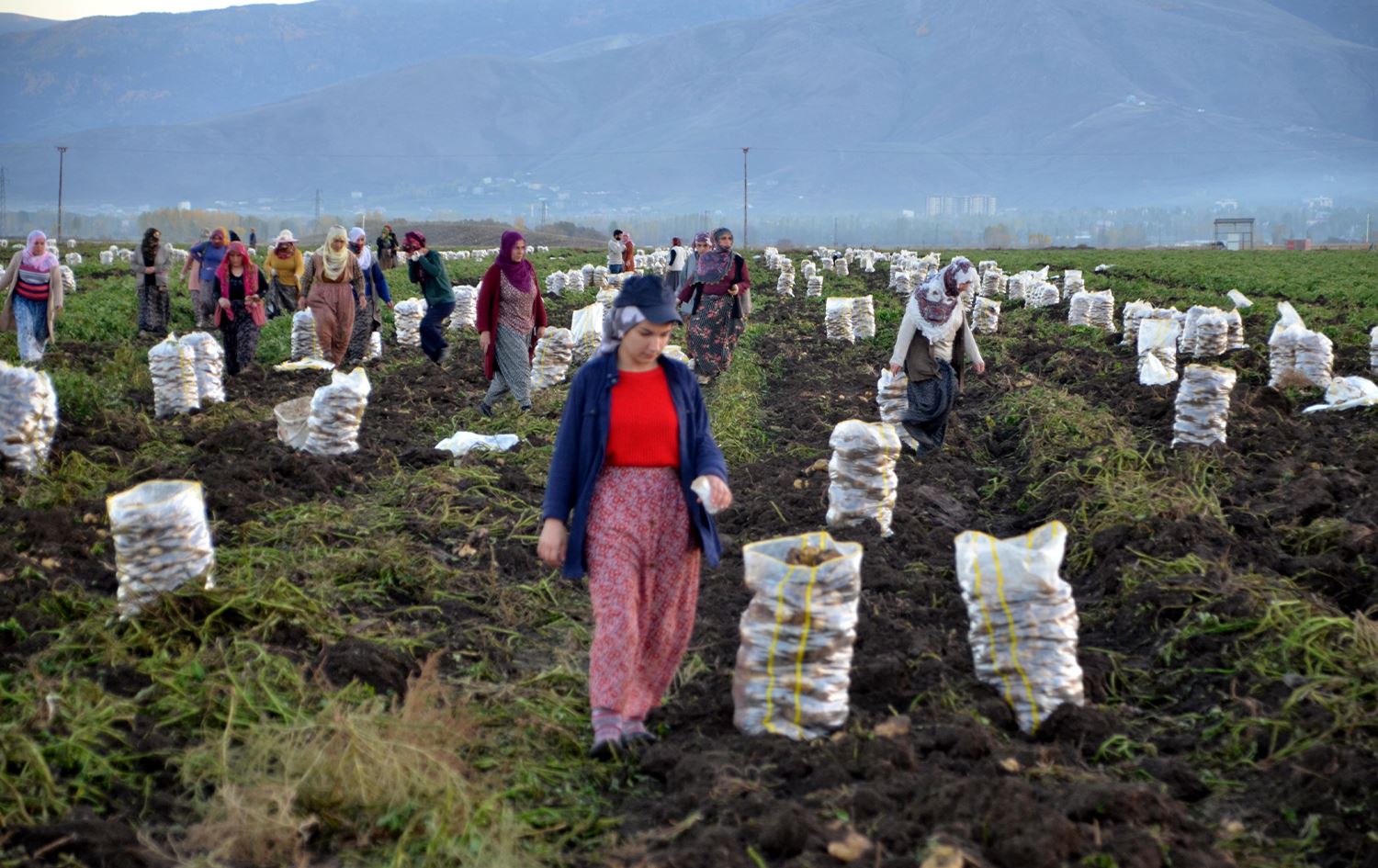Barê giran ê debarê berê jinên kedkar ên Mûşê daye nav zeviyên kartolan.