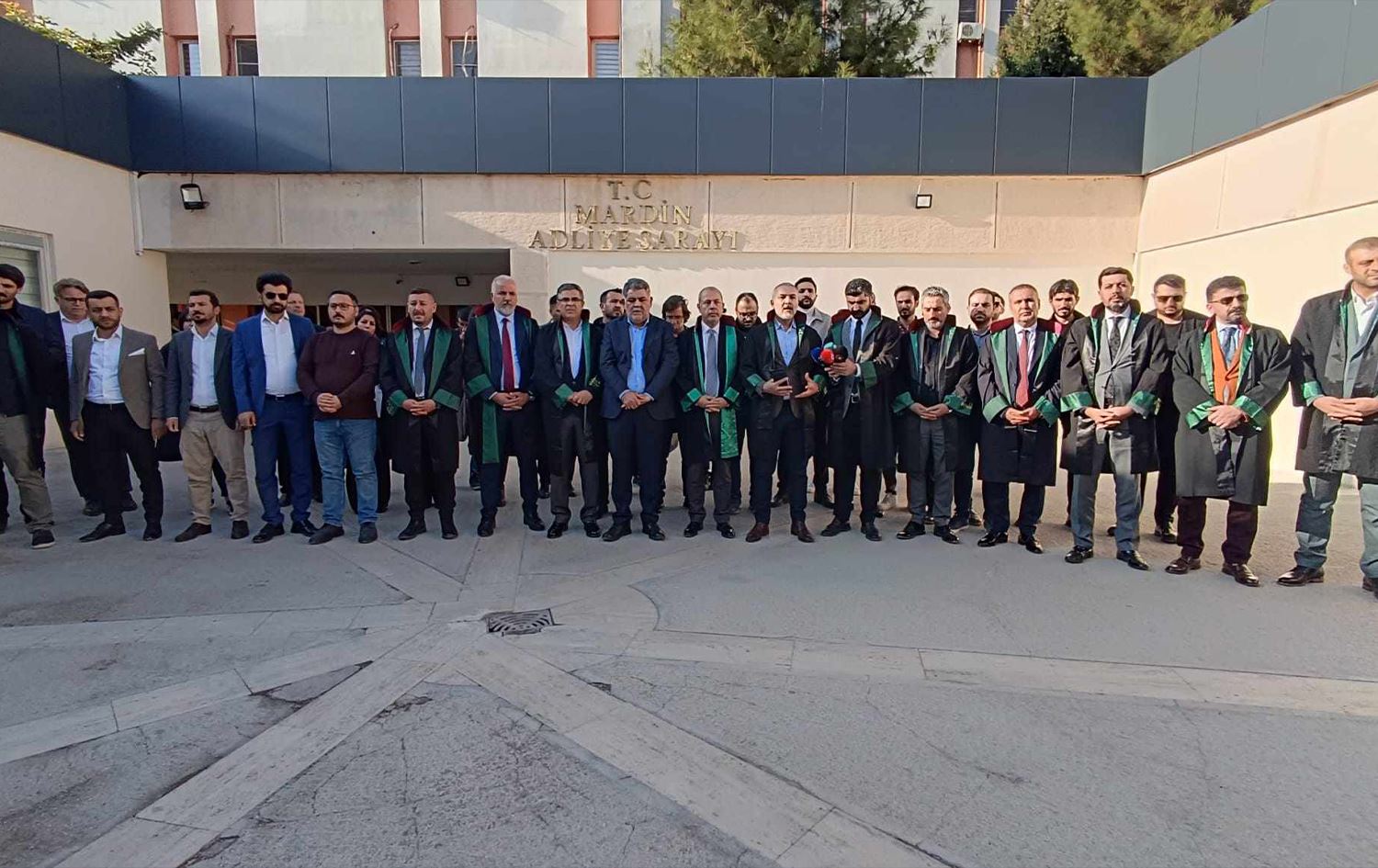 Serok û berpirsên baroyan bi Serokê Baroya Mêrdînê Ahmet Duyan re civiyan û piştî civîna li Baroya Mêrdîne şande derbasî Dadgeha Mêrdînê bû.