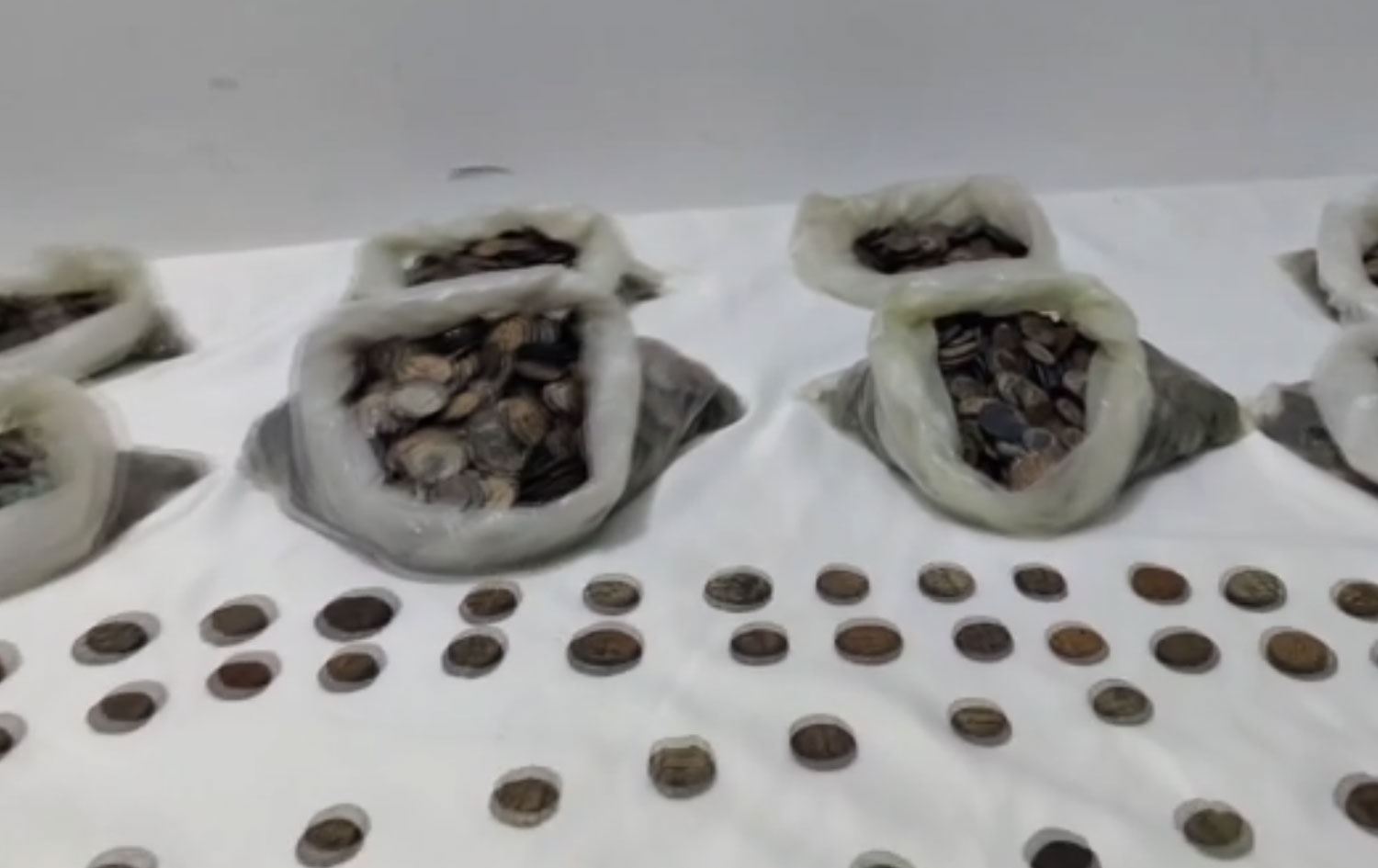 Di otomobîlê de 4 hezar û 897 sîke (pereyên kevnar ên hesinî) hatin dîtin û 2 gumanbar hatin desteserkirin.