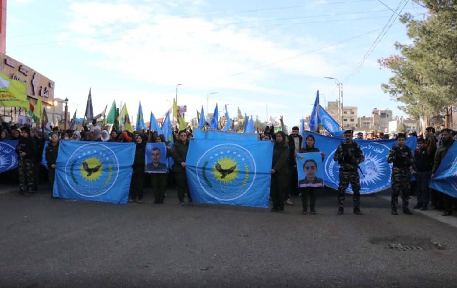 Hewlêr (Rûdaw) - Meclisa Bajarê Hisîçayê ya Rojavayê Kurdistanê ji bo piştgiriya şêniyên taxên Şêx Meqsûd û Eşrefiyeyê yên Helebê meşeke girseyî li dar xist.