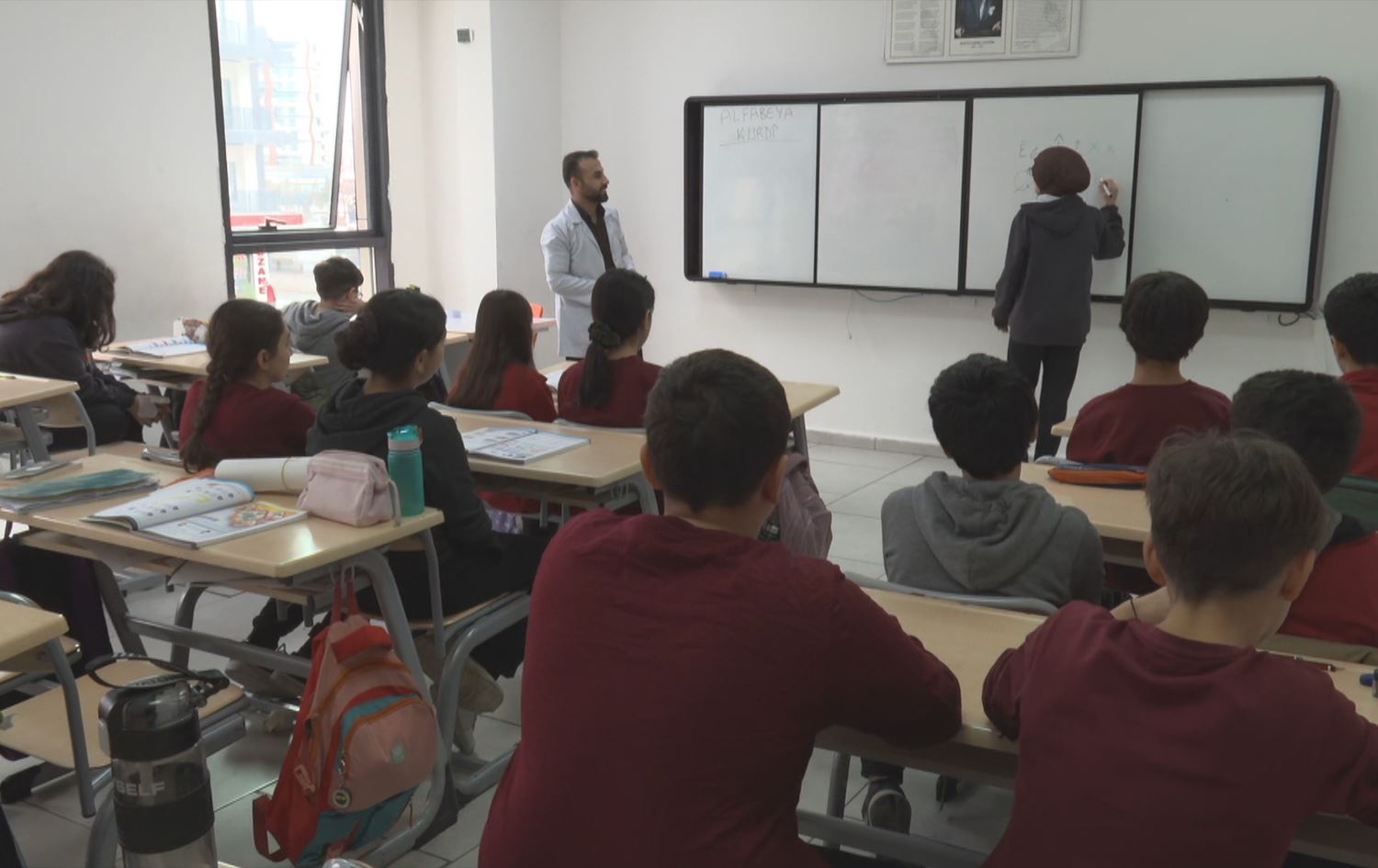 Dîwarên dibistanê jî bi nivîsên Kurdî hatine xemilandin.