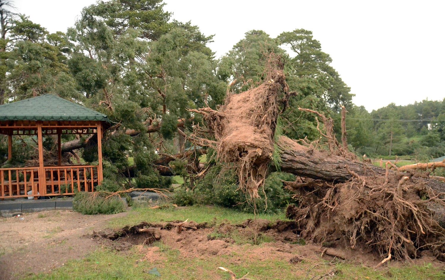 Li Taxa Înonuyê li Baxçeyê Gel ji nişkêva bablîsok rabû û ji ber bablîsokê hin dar ji kokê derketin.