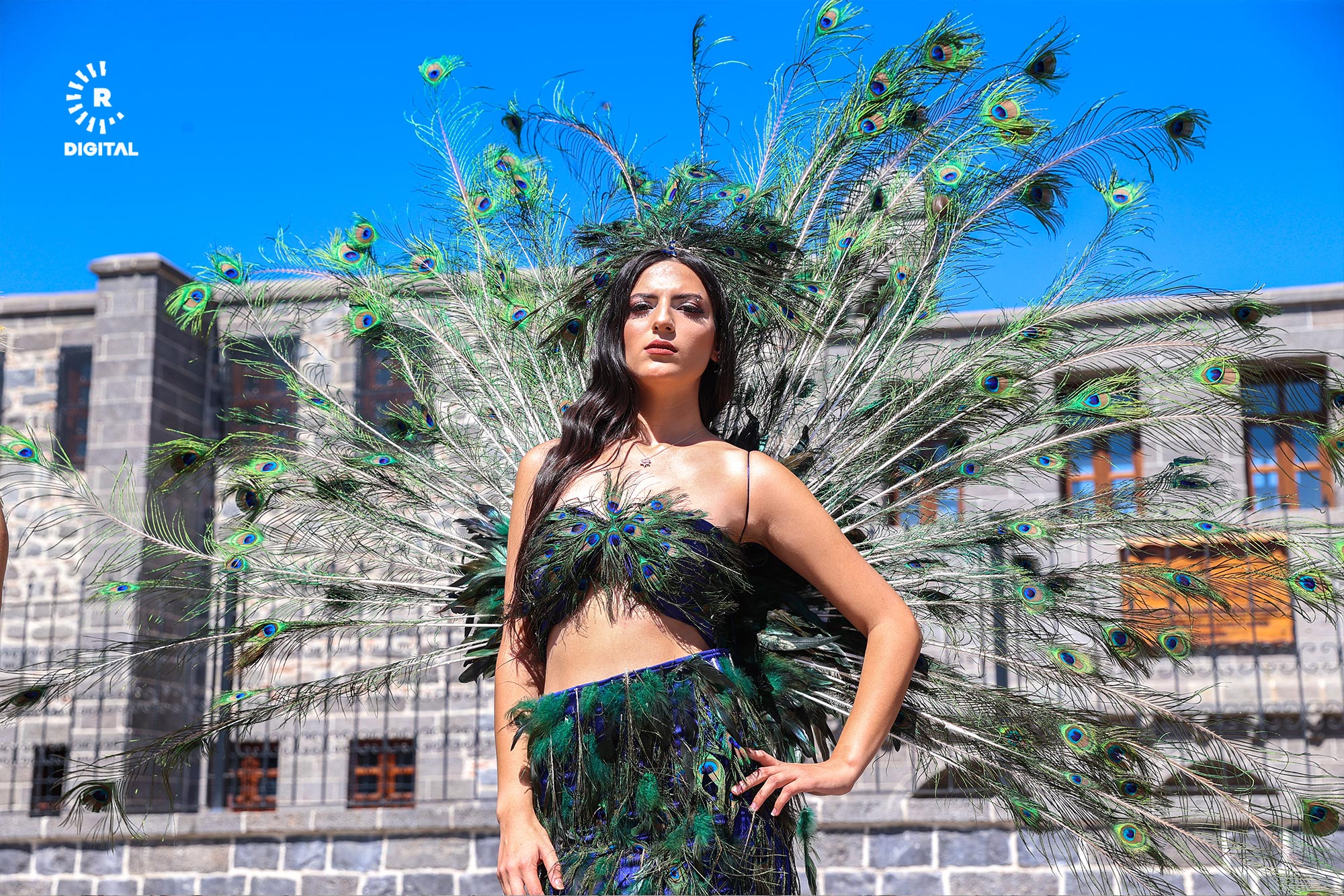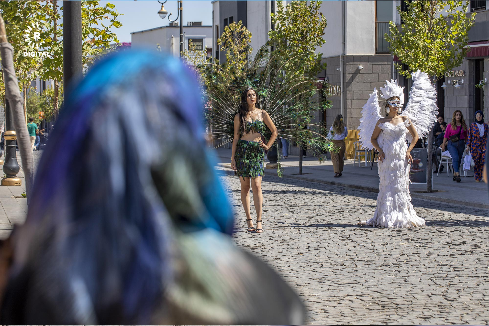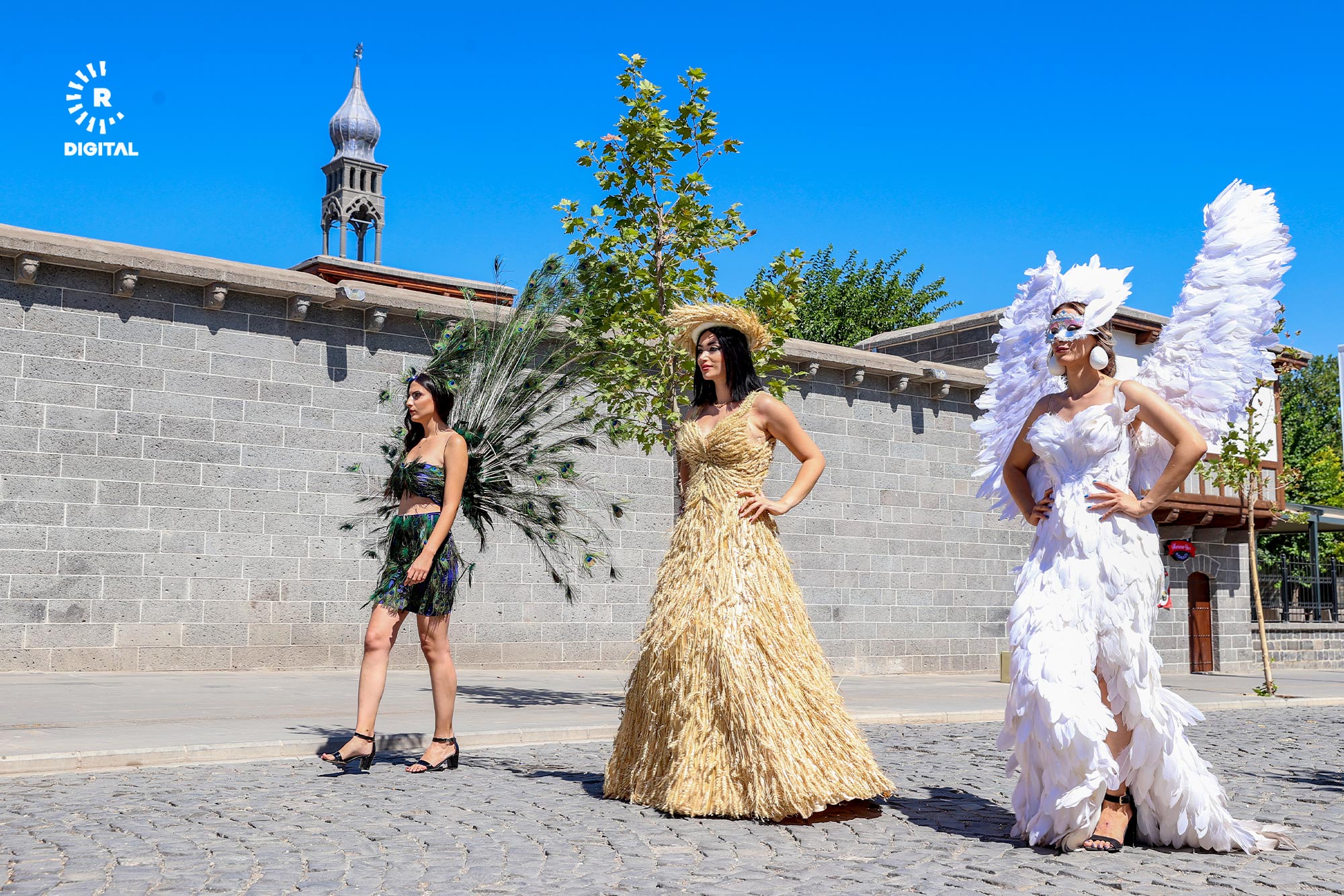 Xwediyê Kompanayayê Mehmet Kaymak li navçeya Sûrê, li ser Kolana Yenîkapiyê ku Minareya Çar Ling a dîrokî û Dêra Ermeniyan a Surp Giragos lê ne, bi mankenan, berhemên xwe derxistin defîleyê.