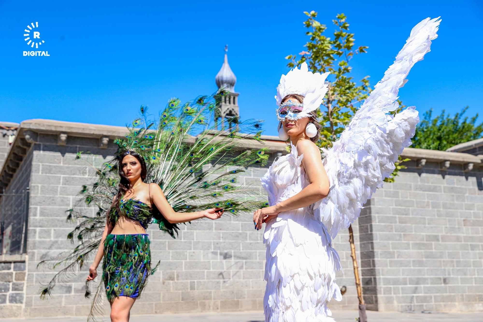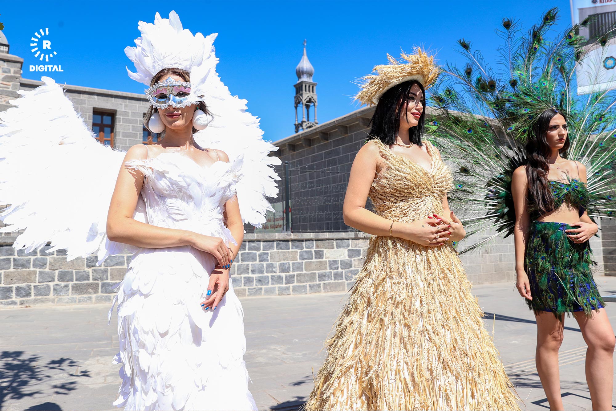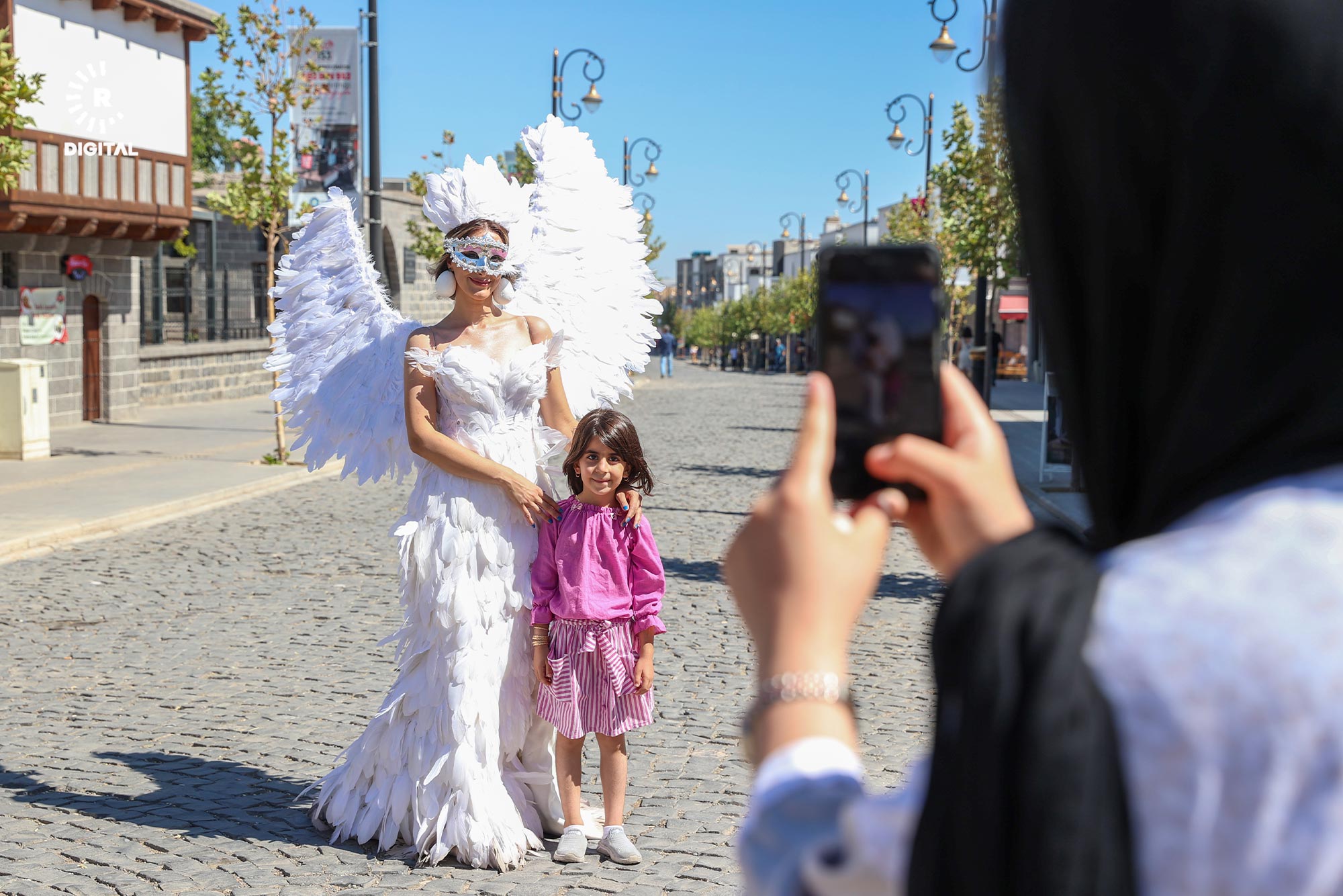 Xwediyê Kompanayayê Mehmet Kaymak li navçeya Sûrê, li ser Kolana Yenîkapiyê ku Minareya Çar Ling a dîrokî û Dêra Ermeniyan a Surp Giragos lê ne, bi mankenan, berhemên xwe derxistin defîleyê.