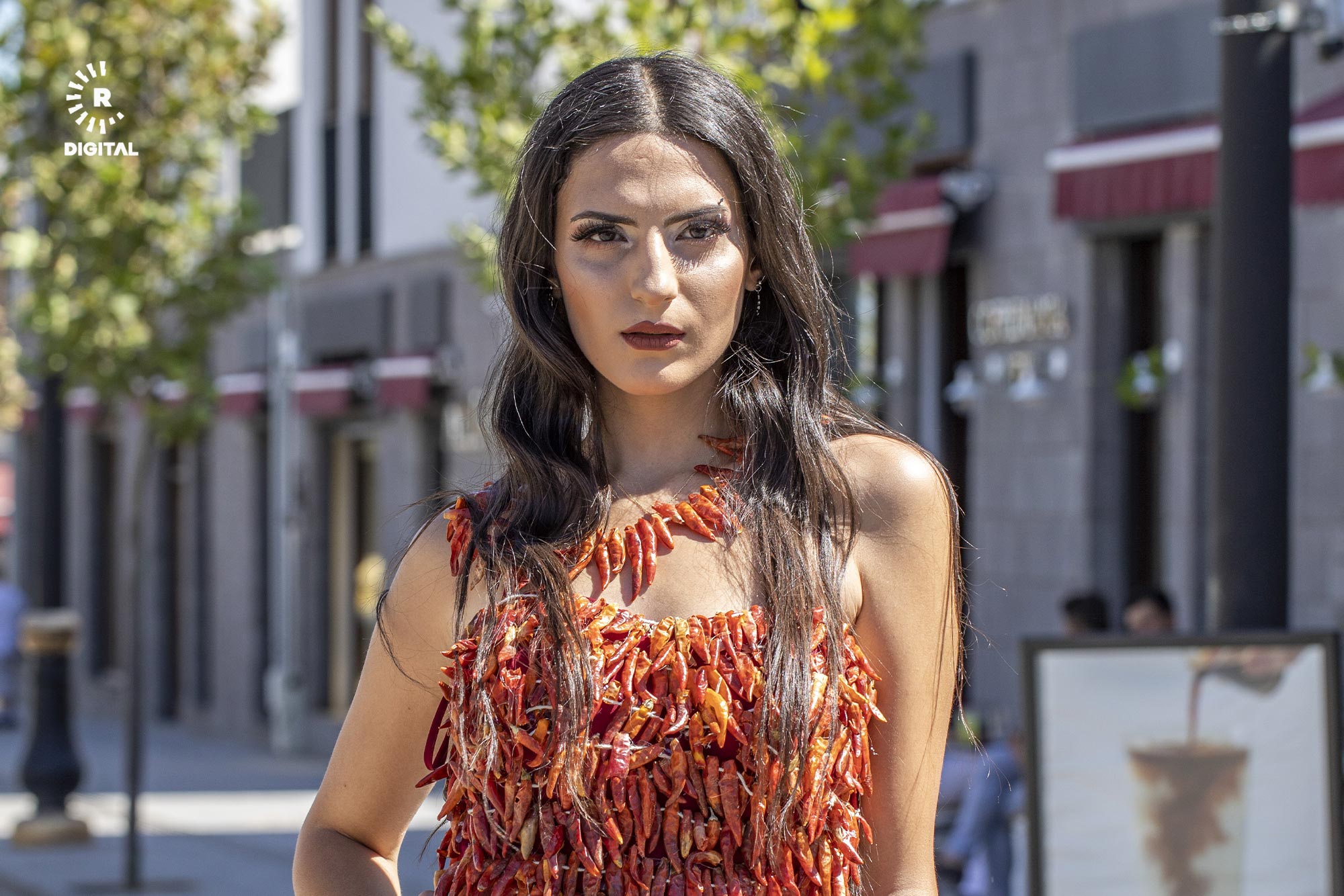 Li Amedê kompanyaya ku kirasên bûkaniyê çêdike, bi simbilên genim, bîber û bamyayên hişkkirî cil çêkirin.