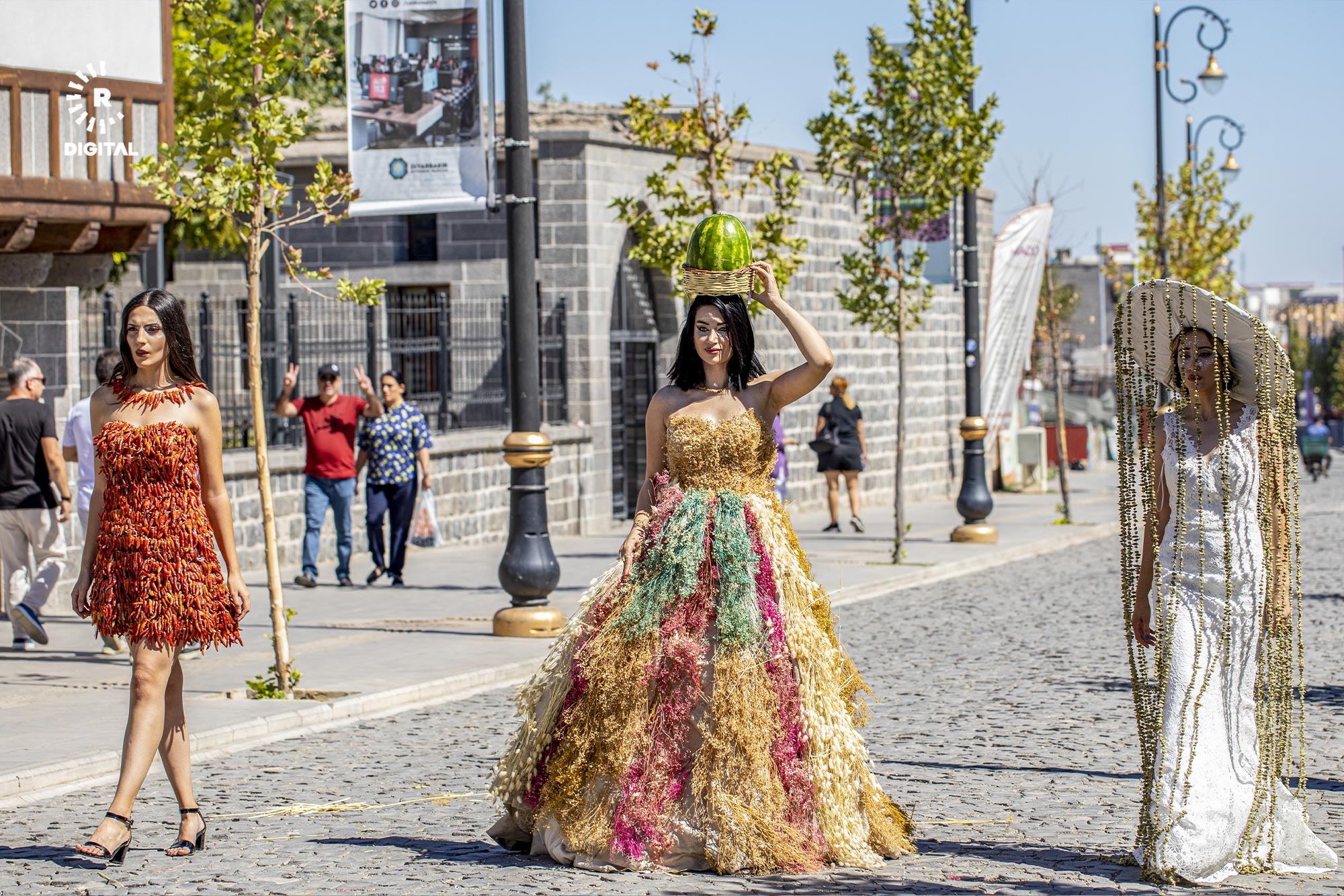 Li bajarê Amedê yê Bakurê Kurdistanê kompanyayekê ji bîber, bamya û genim cil çêkirin û ji bo danasînê wan cîlan li kolanên dîrokî defîle li dar xist.